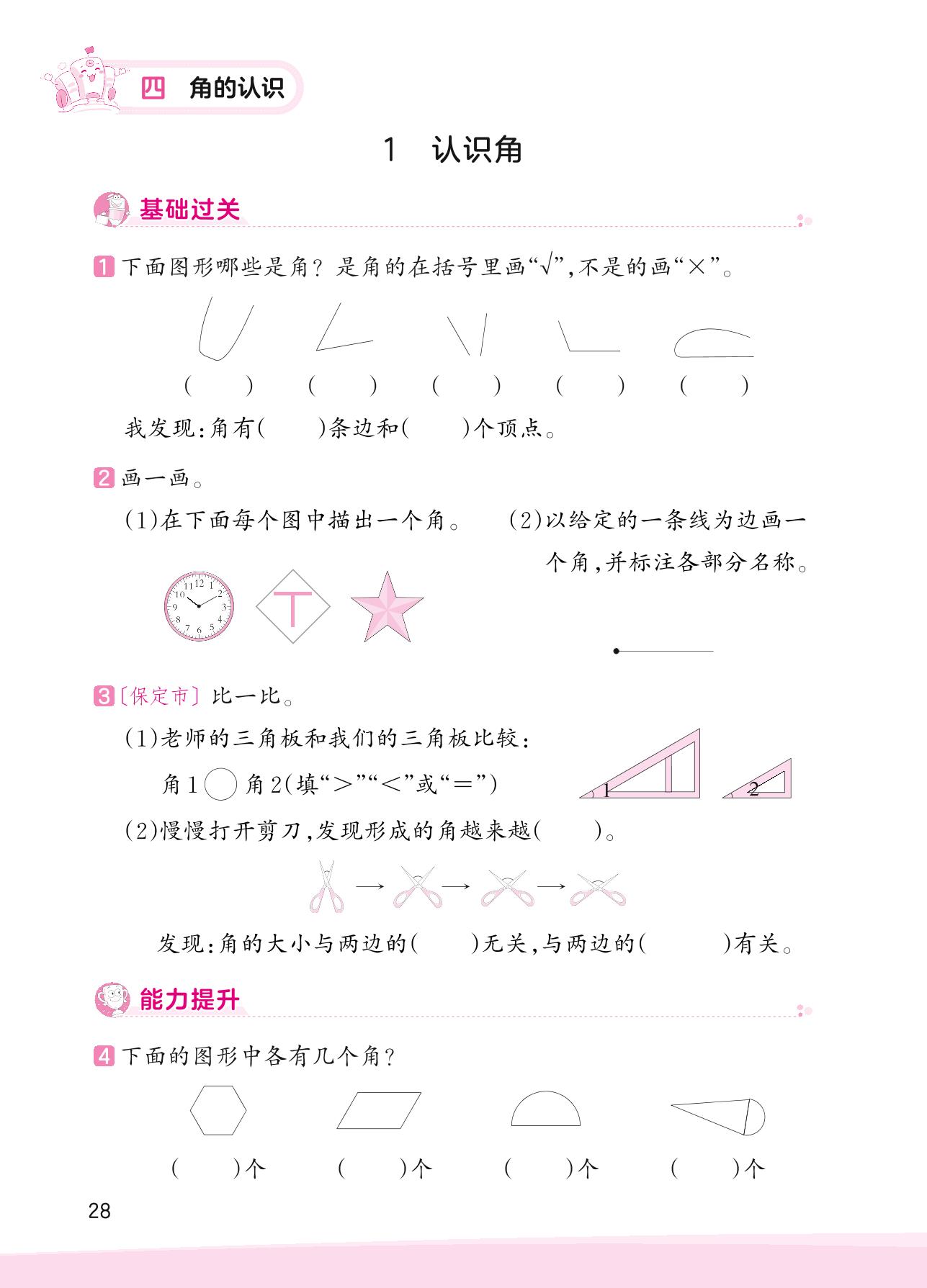 2023上册二年级数学冀教版 四 角的认识——1 认识角