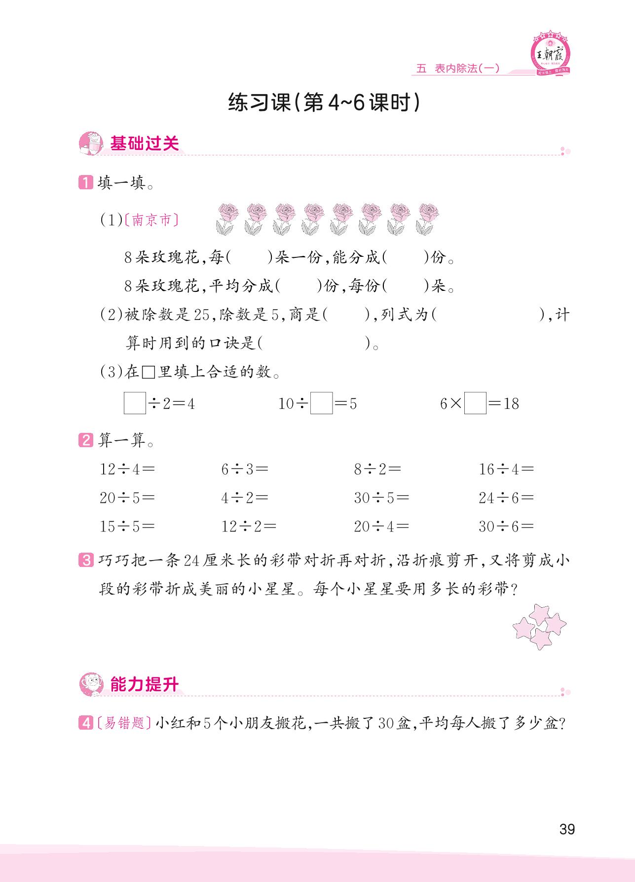 2023上册二年级数学冀教版 五 表内除法(一)——练习课(第4~6课时)