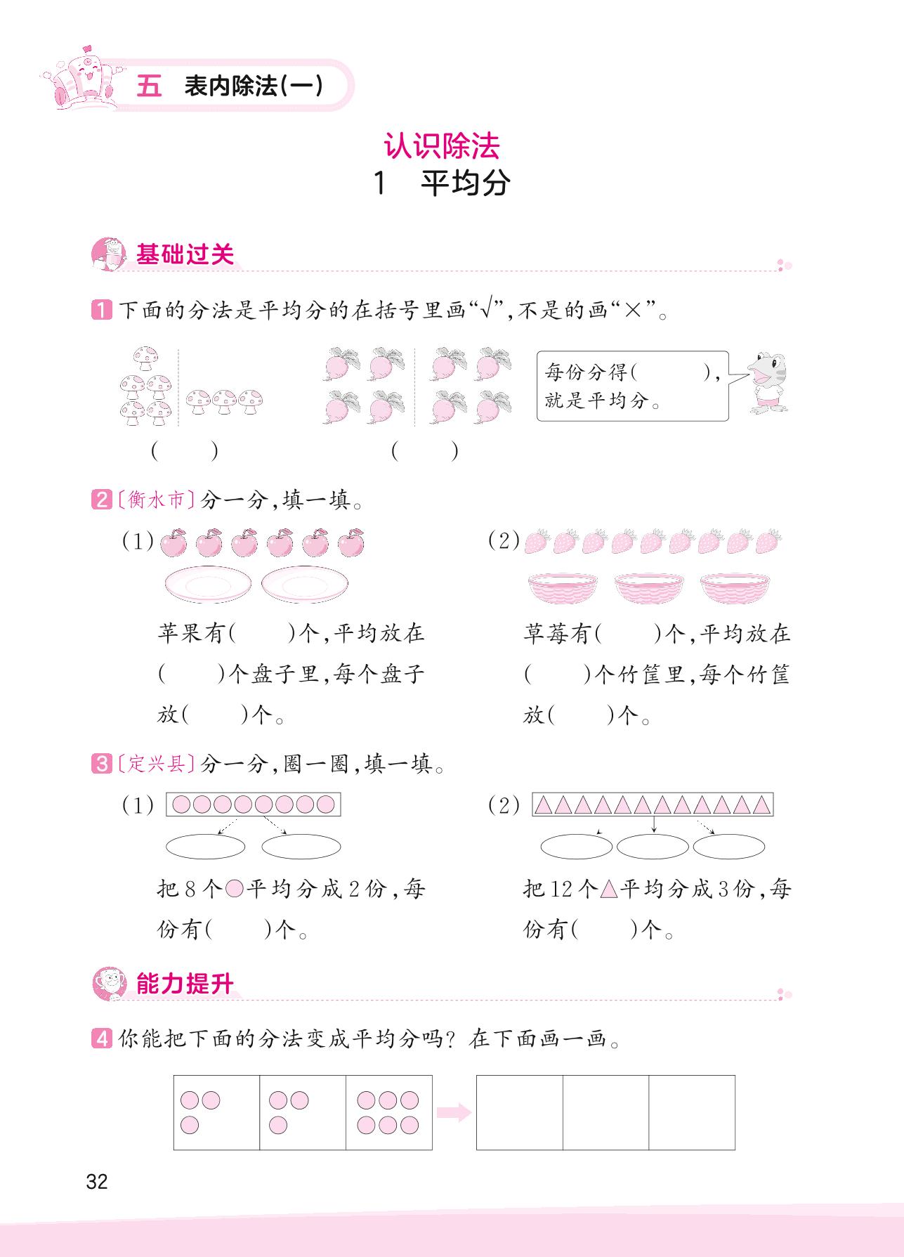 2023上册二年级数学冀教版 五 表内除法(一)——1 平均分