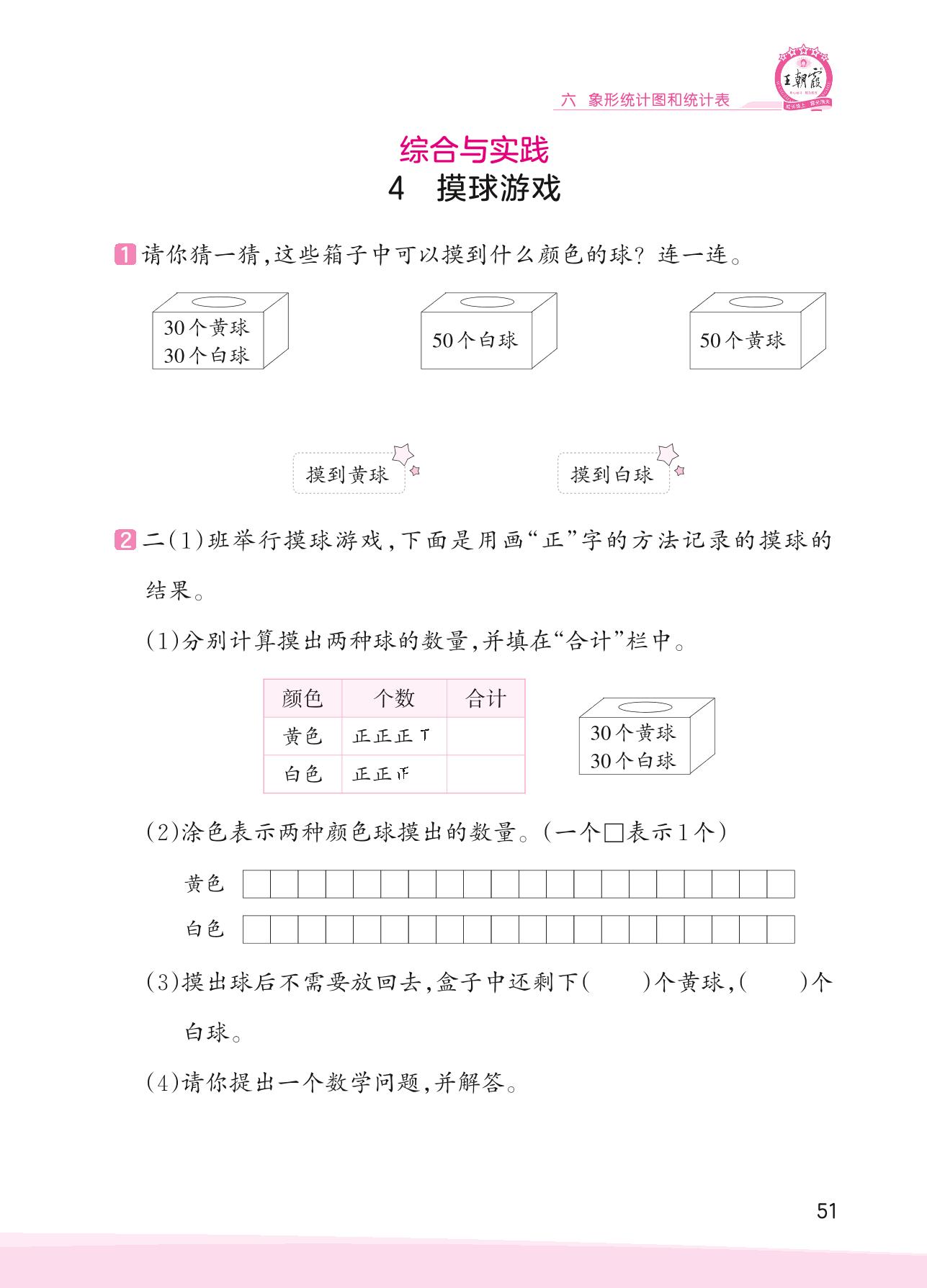 2023上册二年级数学冀教版 六 象形统计图和统计表——4 摸球游戏