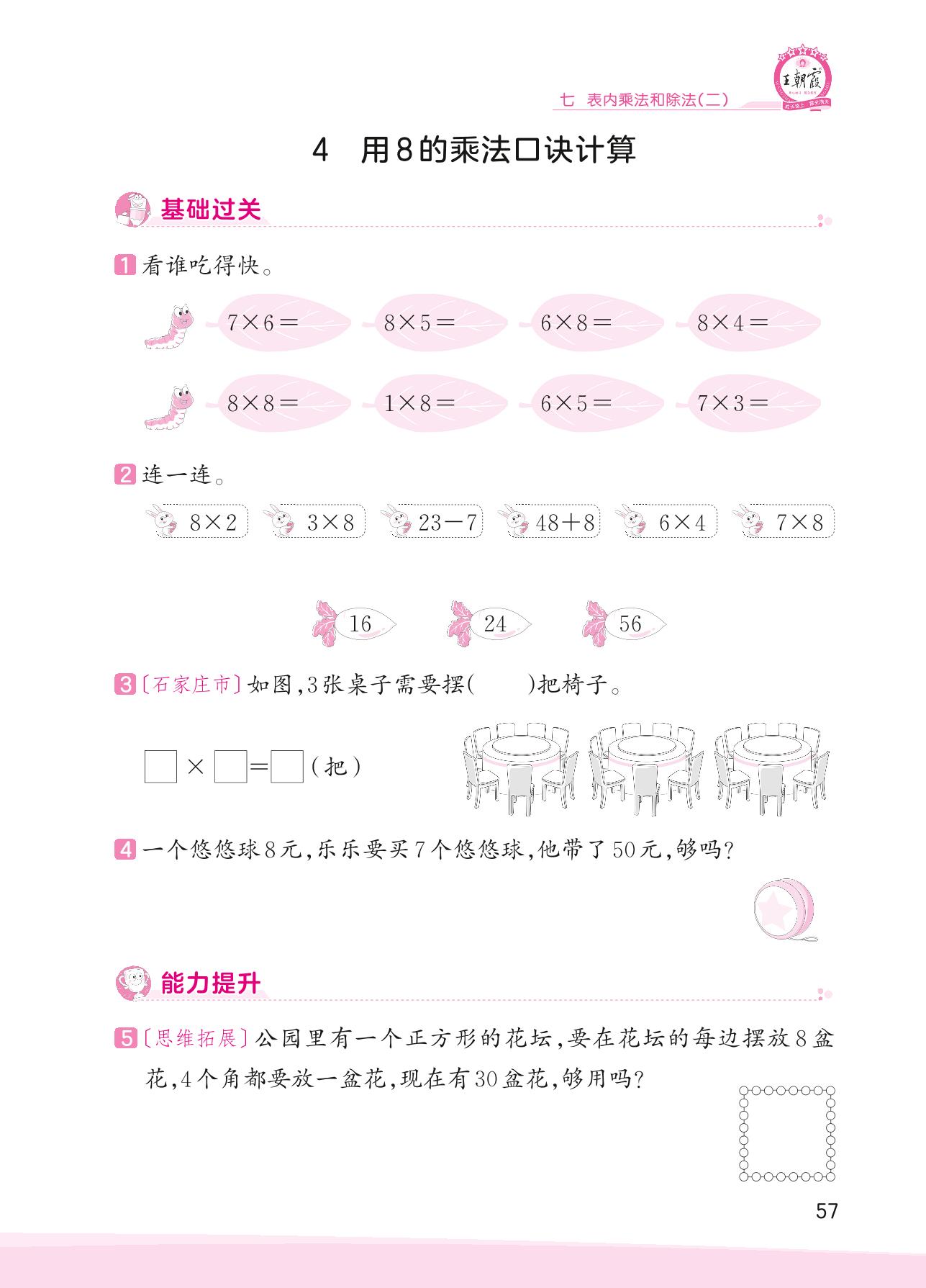 2023上册二年级数学冀教版 七 表内乘法和除法(二)——4 用8的乘法口诀计算