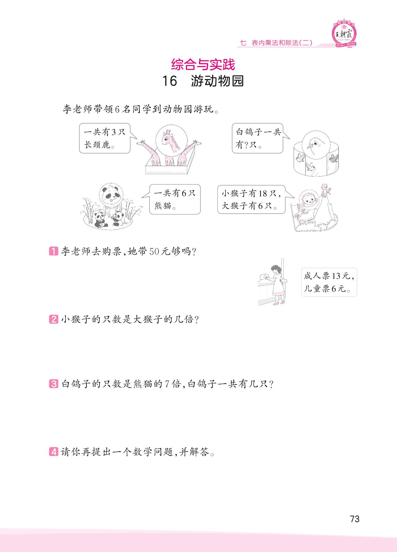 2023上册二年级数学冀教版 七 表内乘法和除法(二)——16 游动物园