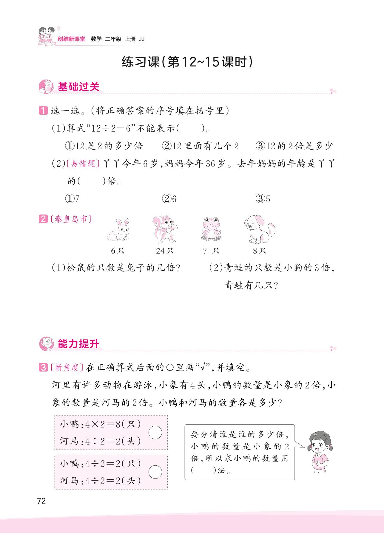2023上册二年级数学冀教版 七 表内乘法和除法(二)——练习课(第12~15课时)