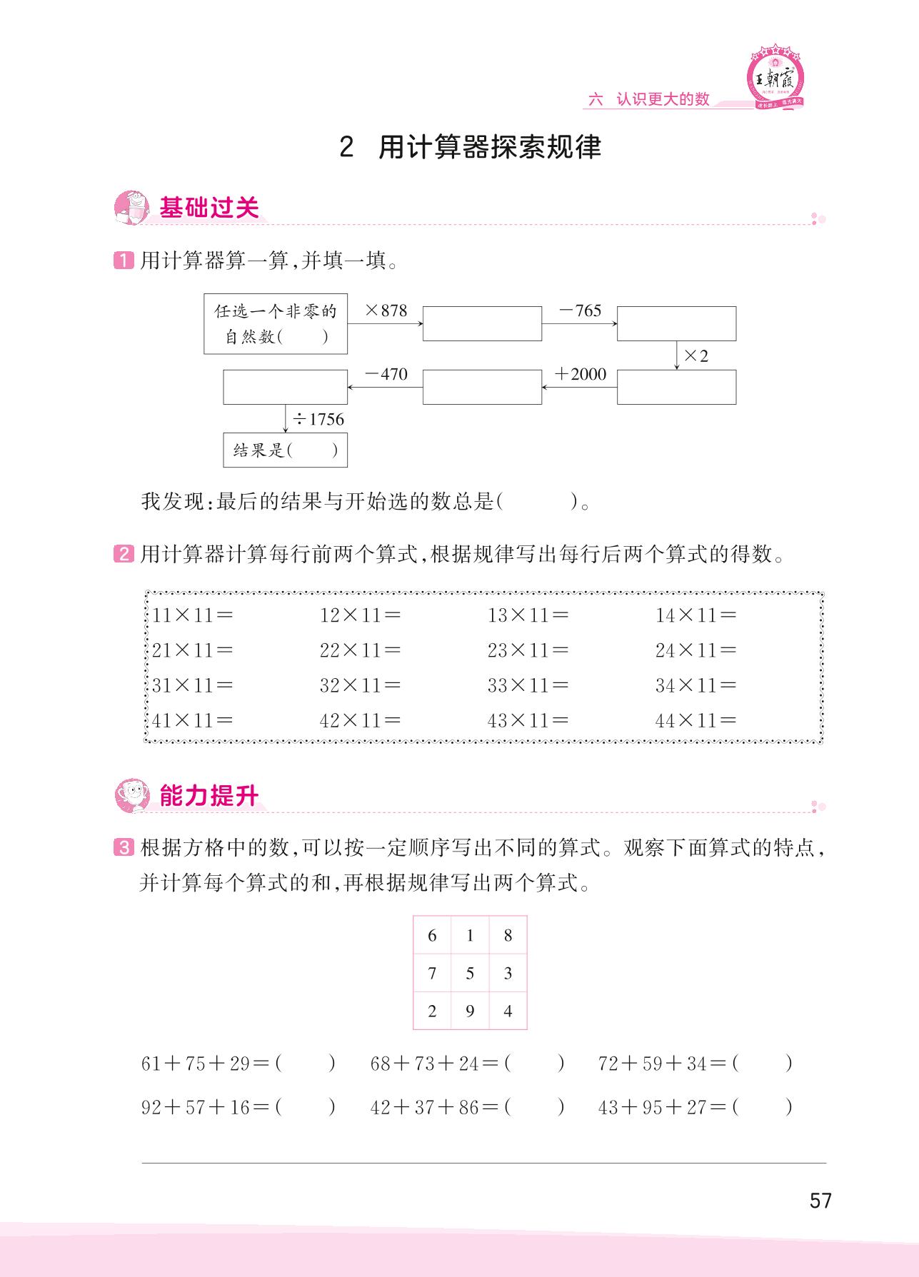 2023上册四年级数学冀教版 六 认识更大的数——2 用计算器探索规律