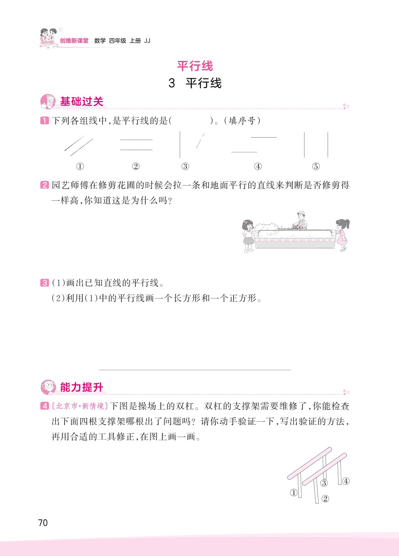 2023上册四年级数学冀教版 七 垂线和平行线——3 平行线
