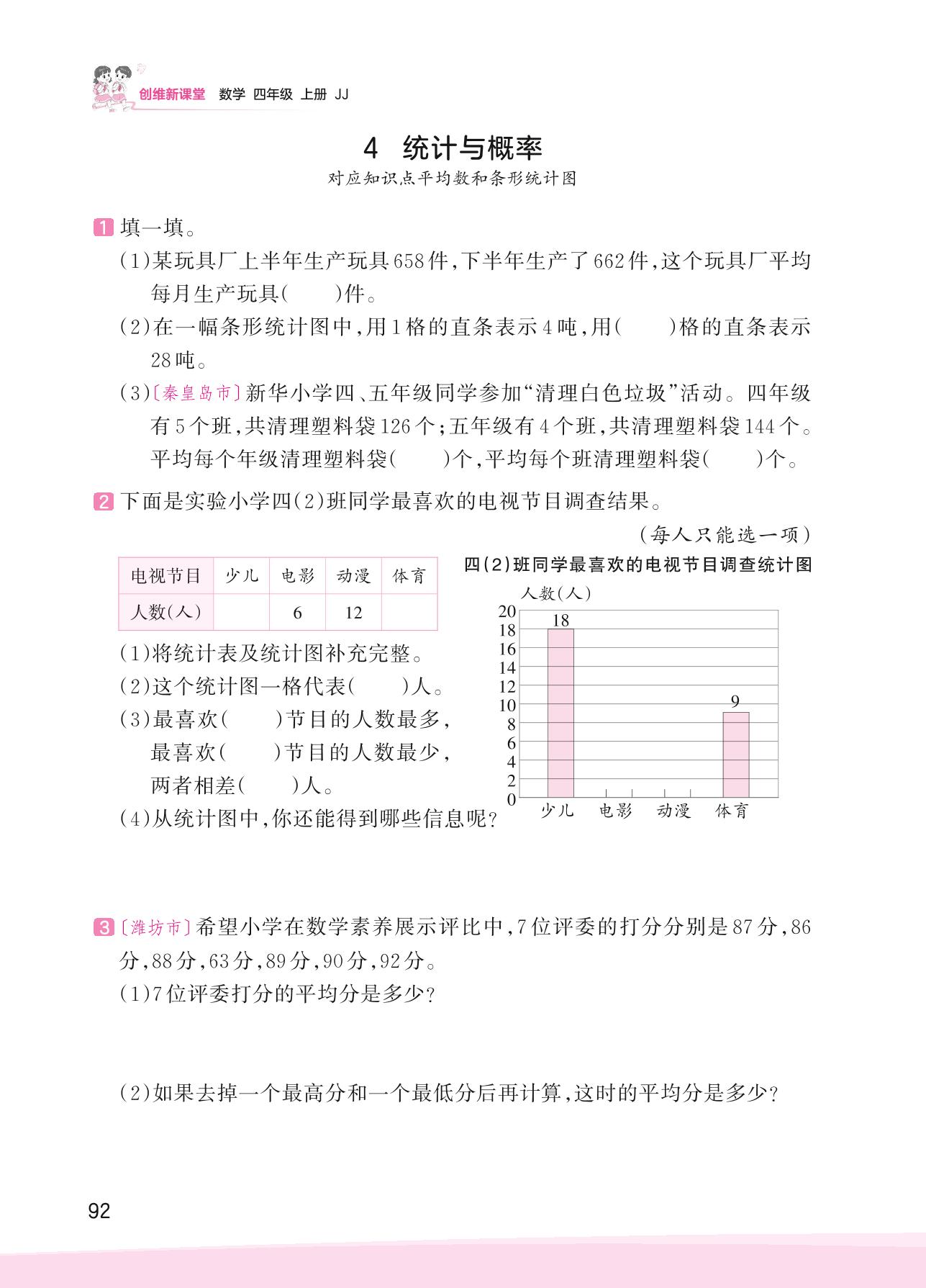 2023上册四年级数学冀教版 整理与评价——4 统计与概率