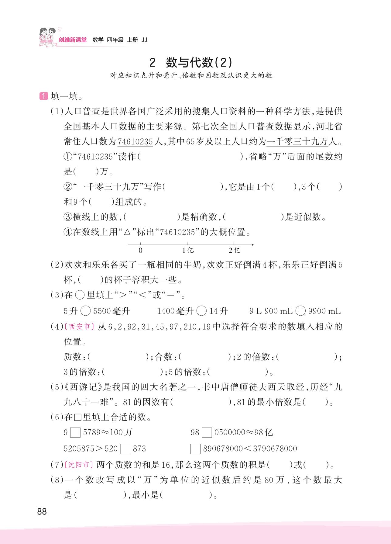 2023上册四年级数学冀教版 整理与评价——2 数与代数(2)