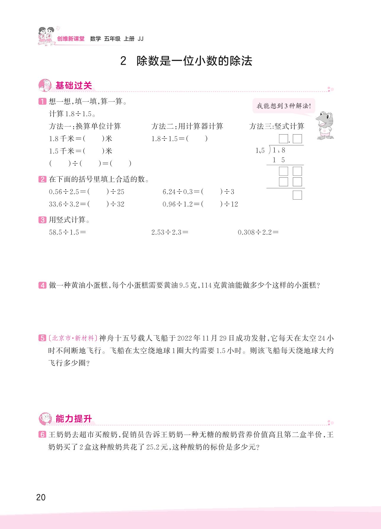2023上册五年级数学冀教版 三 小数除法——2 除数是一位小数的除法