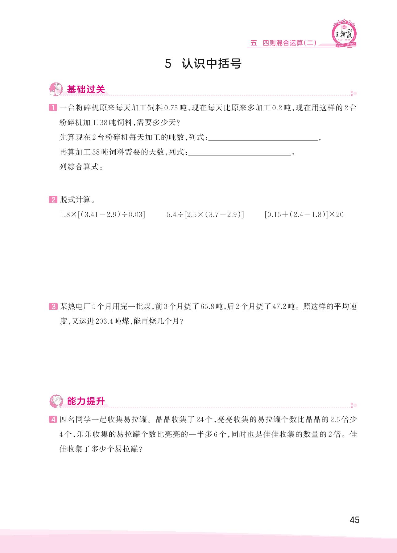 2023上册五年级数学冀教版 五 四则混合运算(二)——5 认识中括号