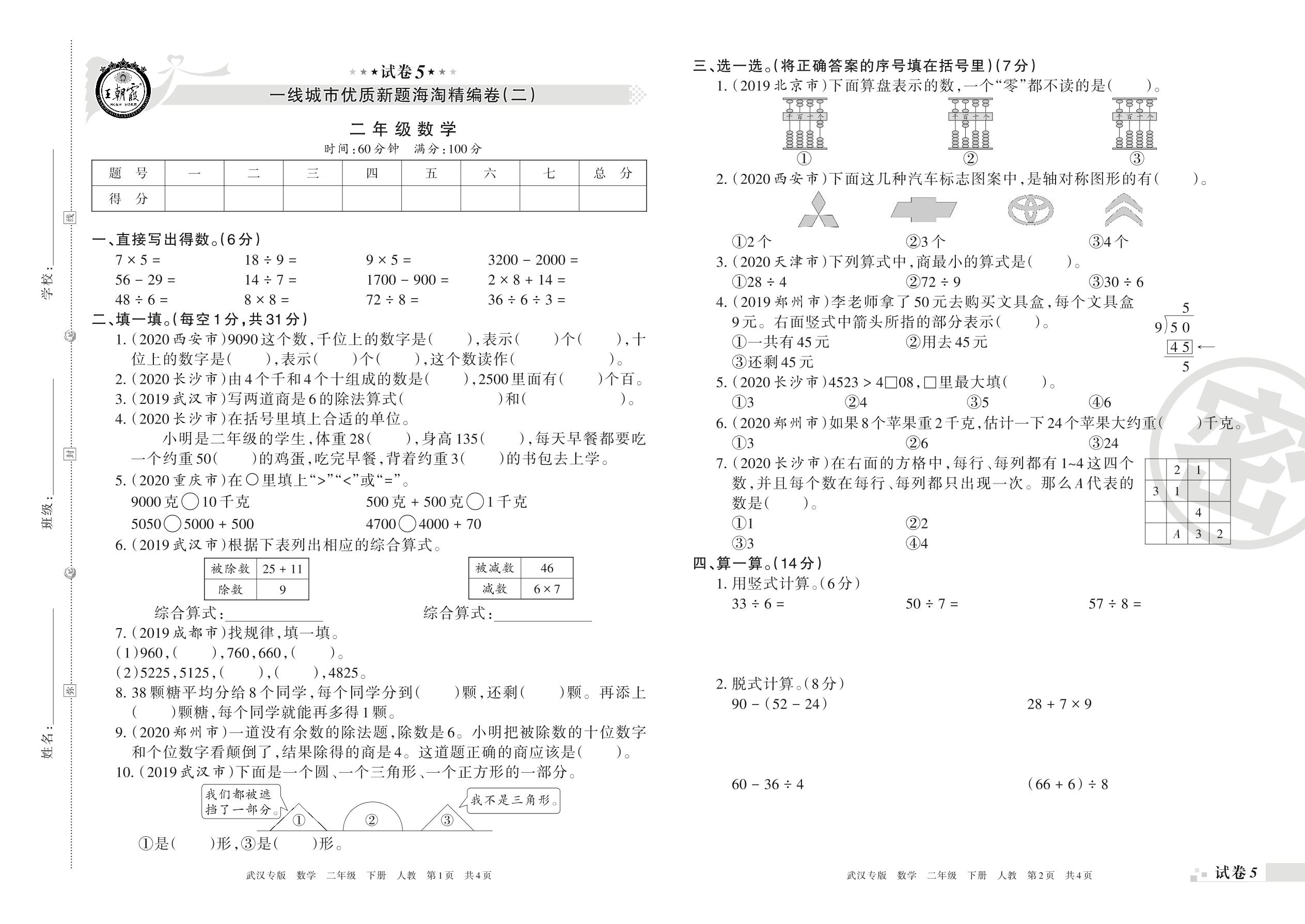 王朝霞海淘期末精编卷二年级下册数学(人教版)_R21080383749【5】