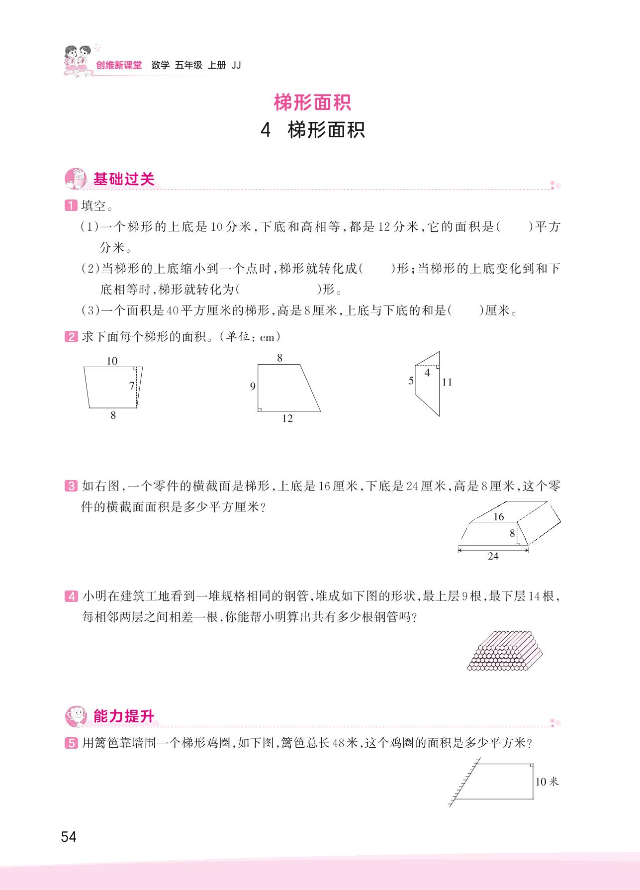 2023上册五年级数学冀教版 六 多边形的面积——4 梯形面积