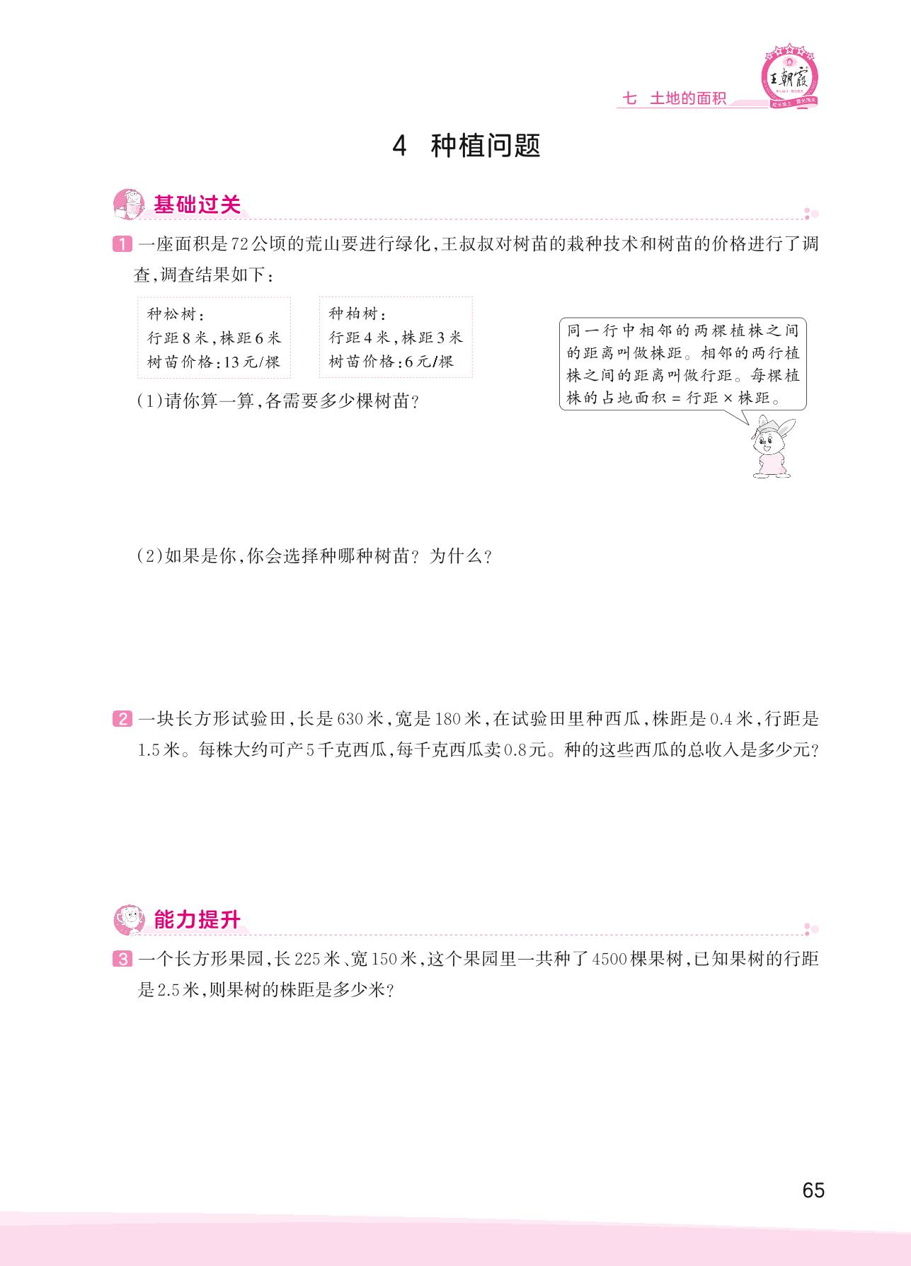 2023上册五年级数学冀教版 七 土地的面积——4 种植问题