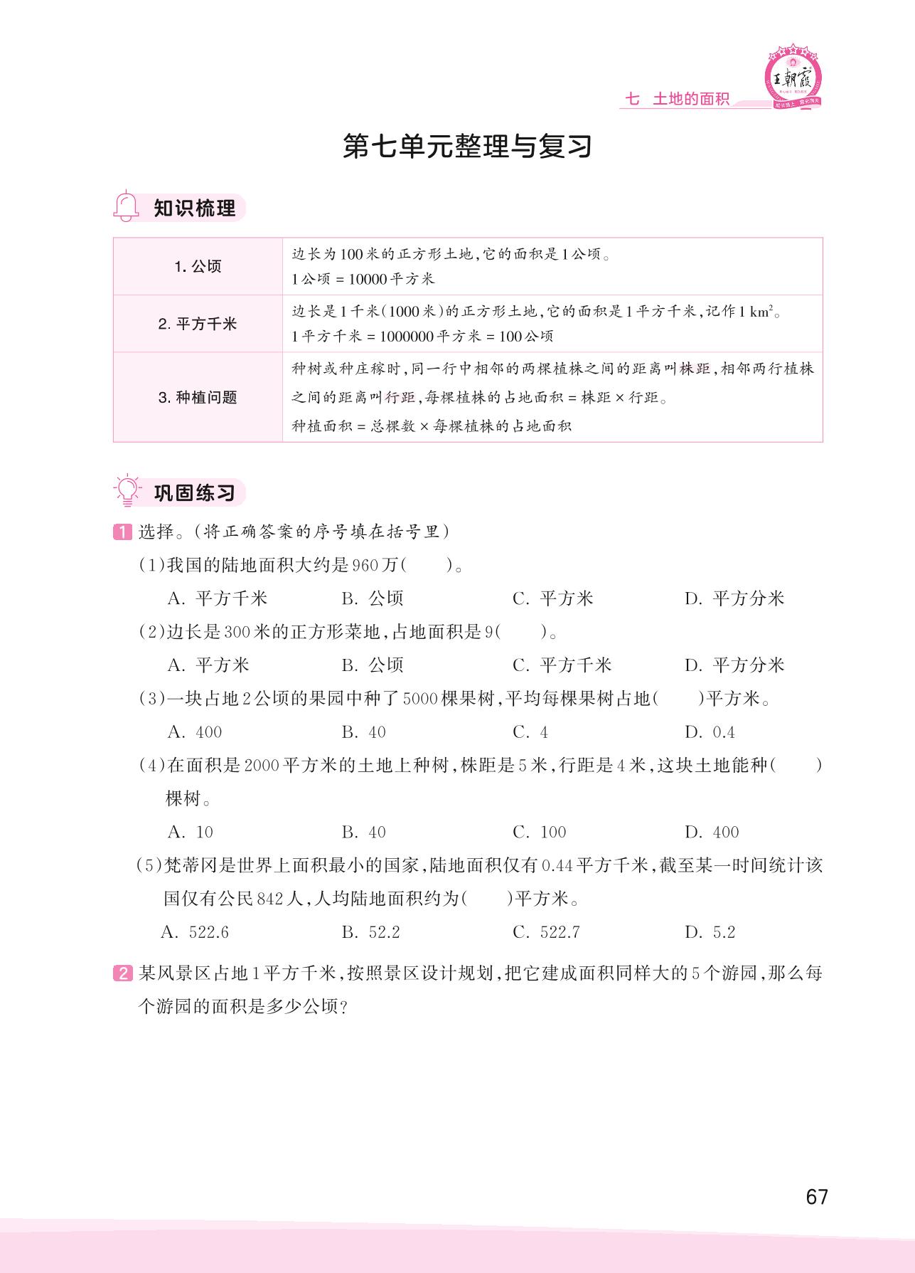 2023上册五年级数学冀教版 第七单元整理与复习