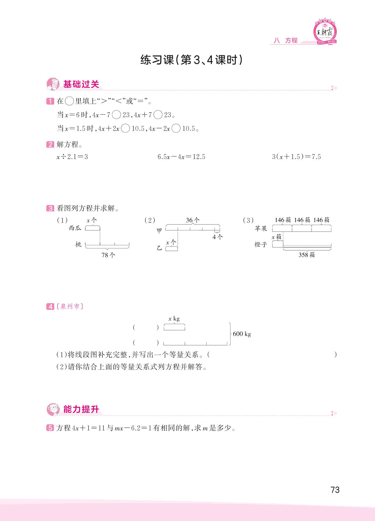 2023上册五年级数学冀教版 八 方程——练习课(第3、4课时)