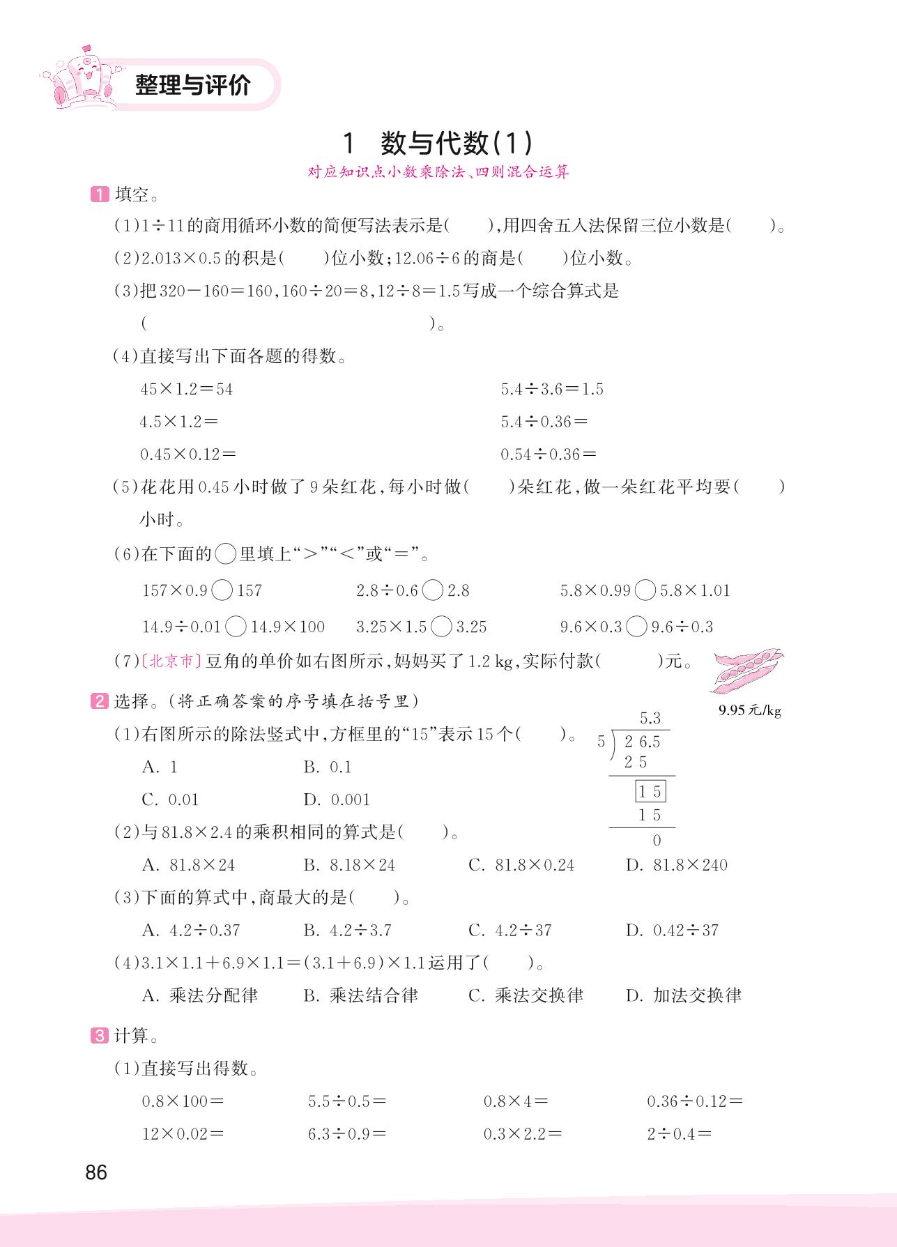 2023上册五年级数学冀教版 整理与评价——1 数与代数(1)