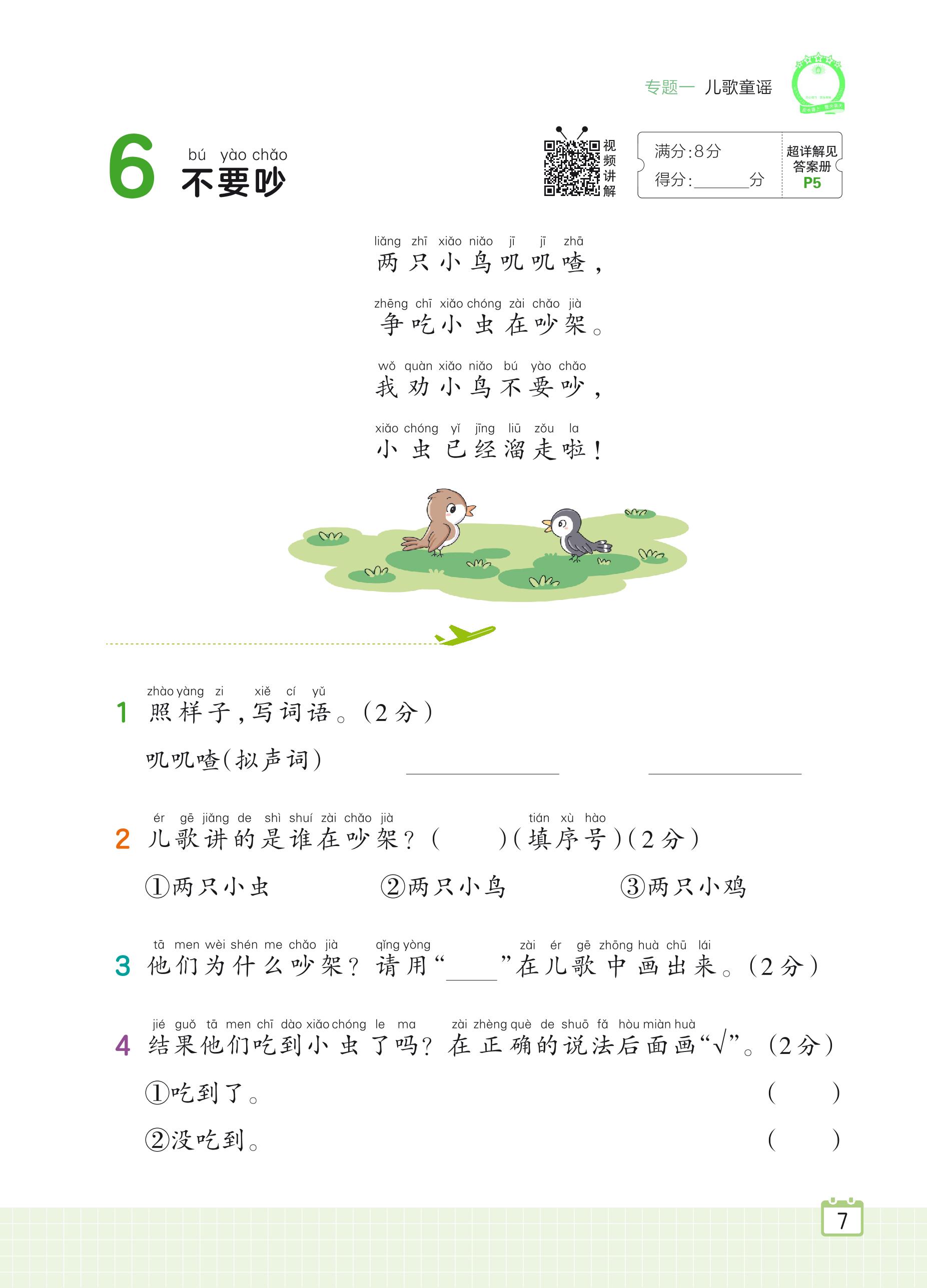 2024全一册一年级语文人教版 专题一 儿童童谣 6 不要吵