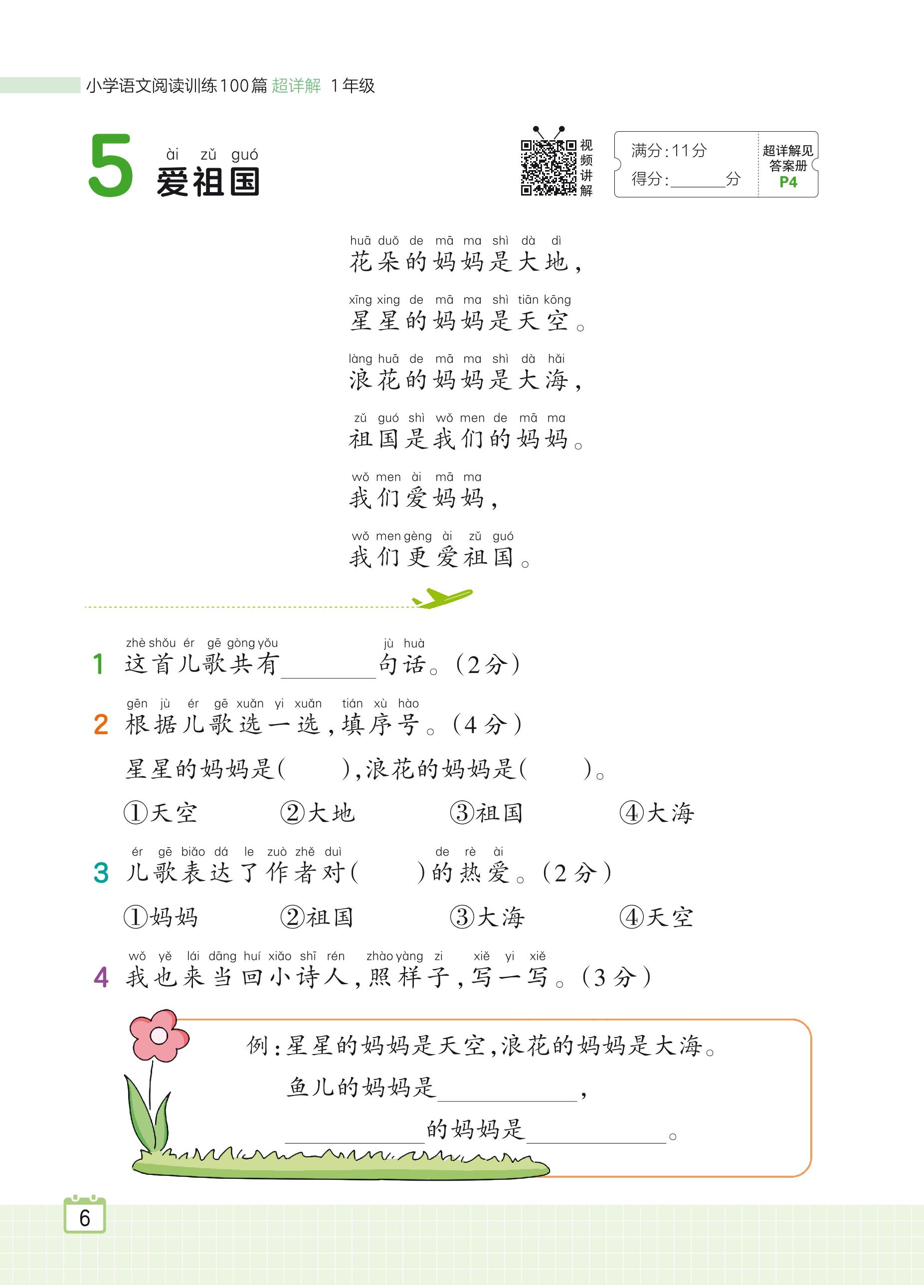 2024全一册一年级语文人教版 专题一 儿童童谣 5 爱祖国