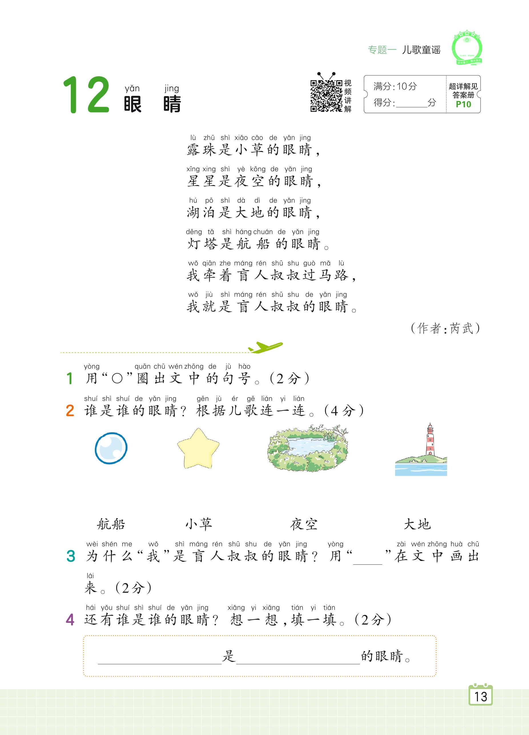 2024全一册一年级语文人教版 专题一 儿童童谣 12 眼睛