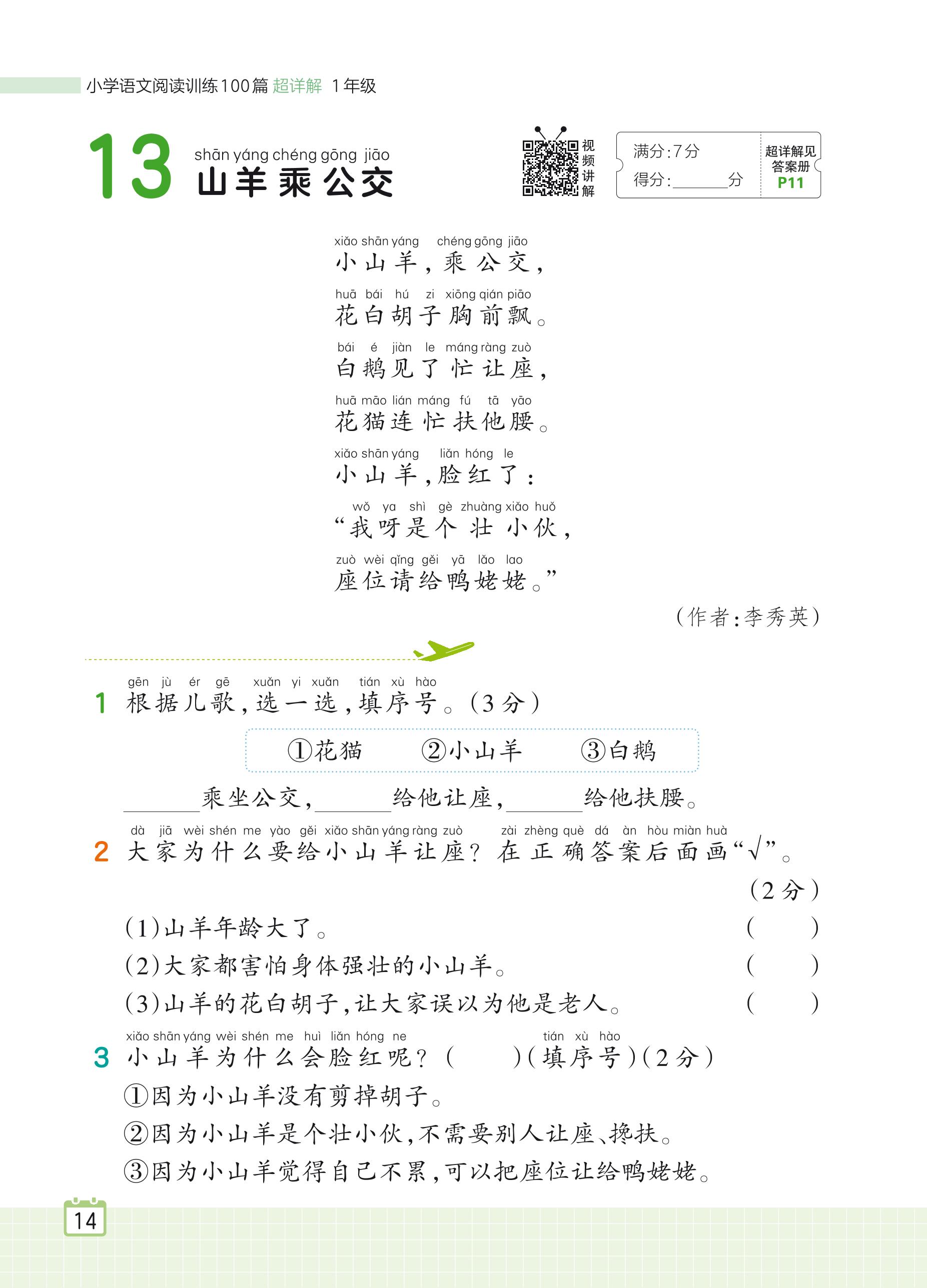 2024全一册一年级语文人教版 专题一 儿童童谣 13 山羊乘公交