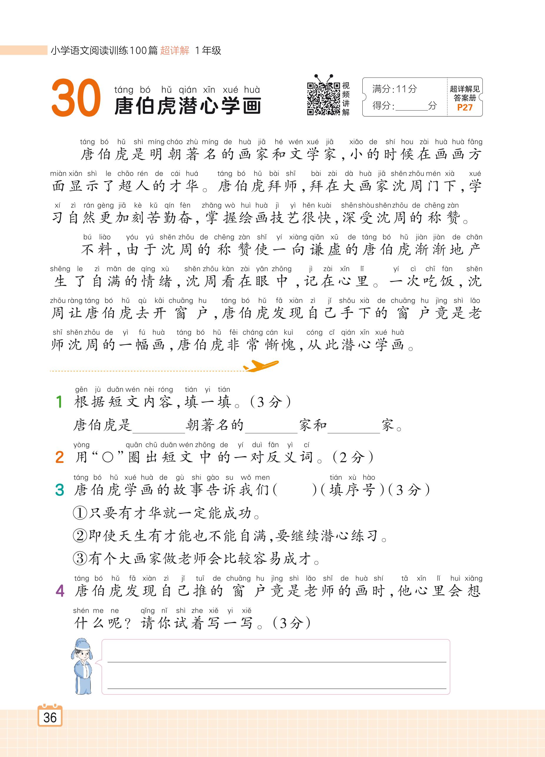 2024全一册一年级语文人教版 专题二 写人记事 30 唐伯虎潜心学画