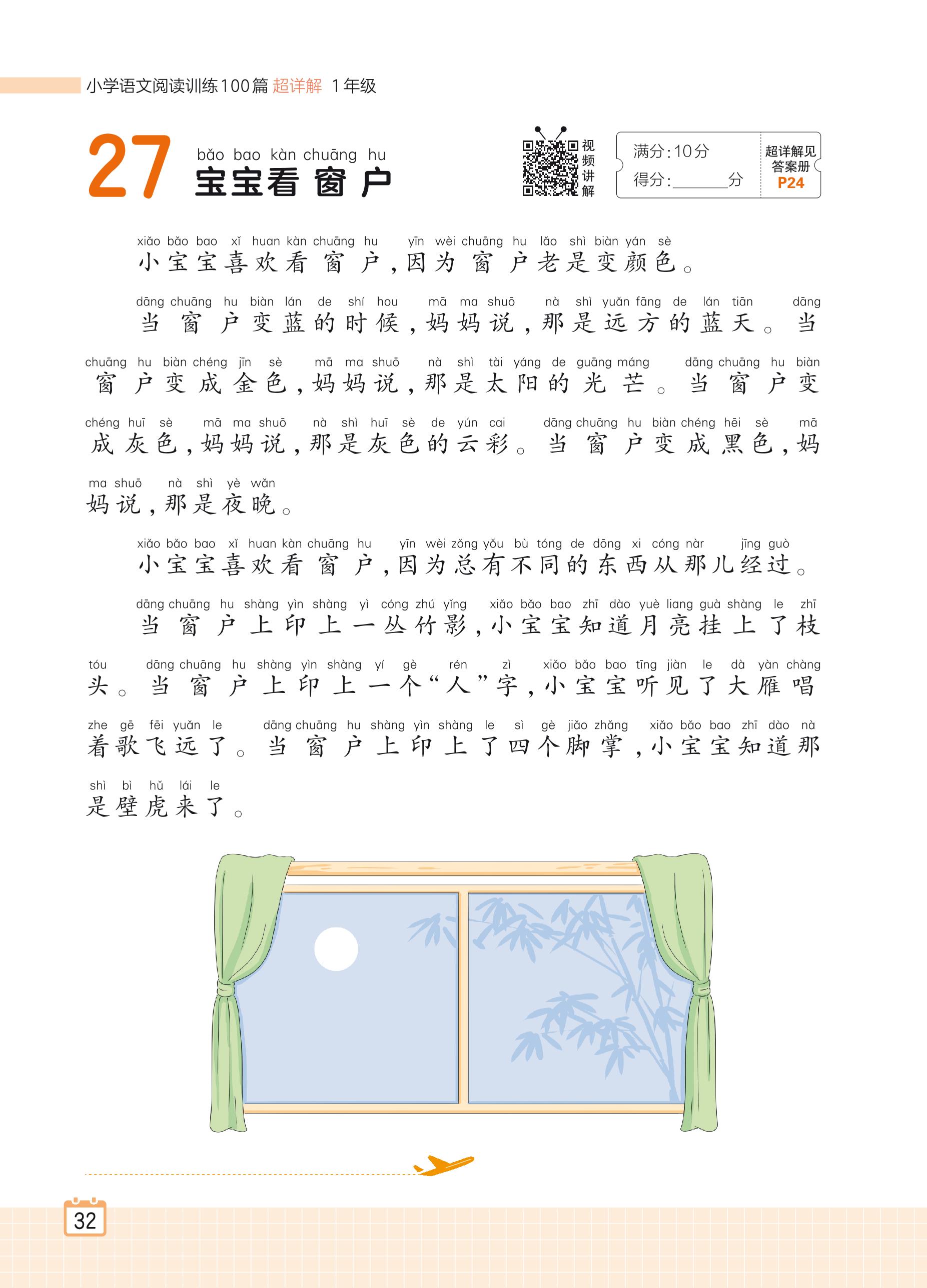 2024全一册一年级语文人教版 专题二 写人记事 27 宝宝看窗户