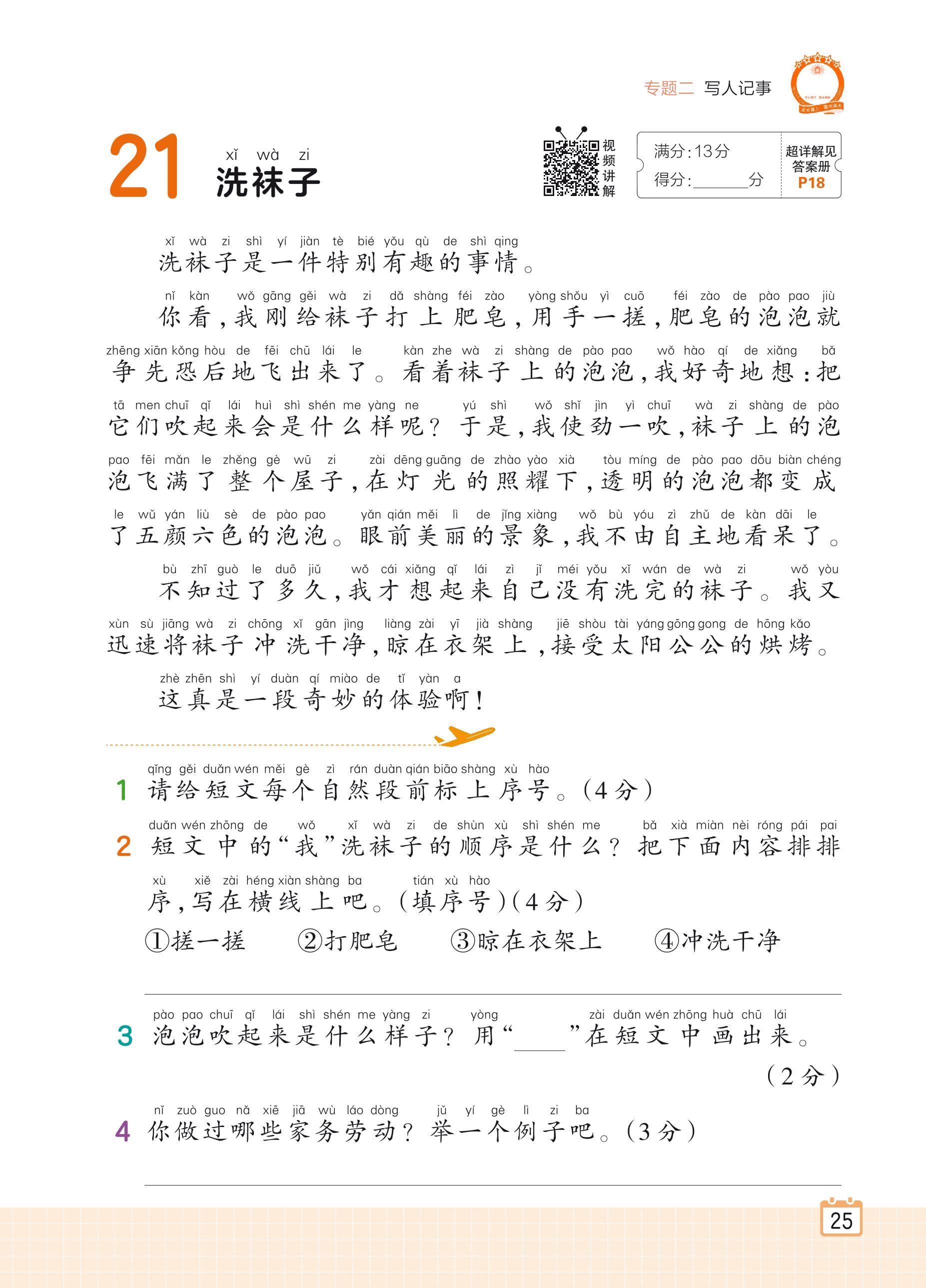 2024全一册一年级语文人教版 专题二 写人记事 21 洗袜子