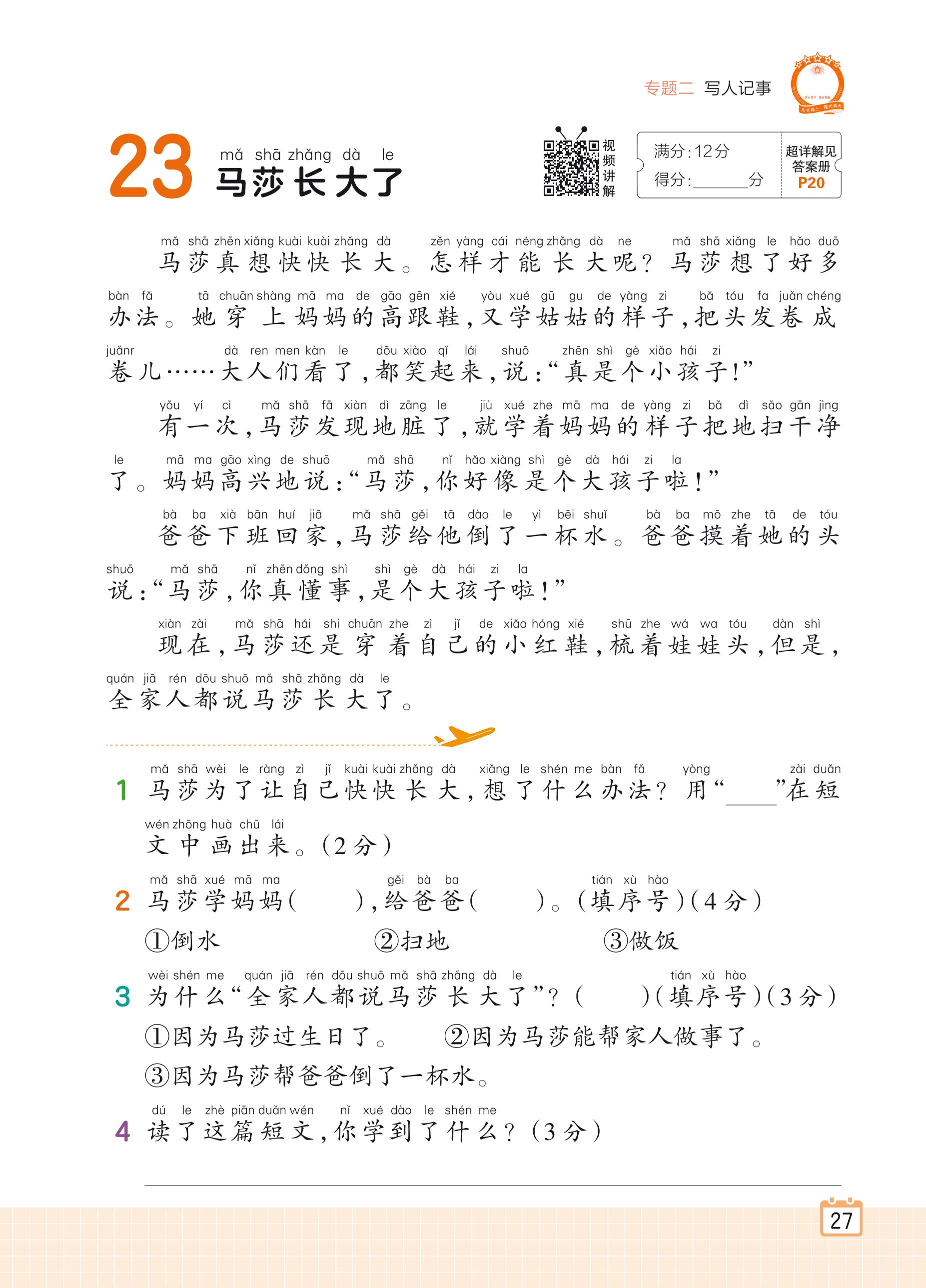 2024全一册一年级语文人教版 专题二 写人记事 23 马莎长大了