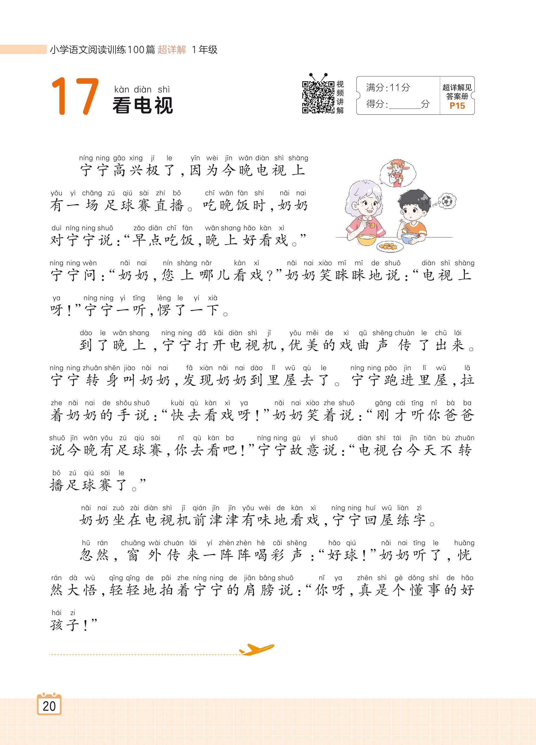 2024全一册一年级语文人教版 专题二 写人记事 17 看电视