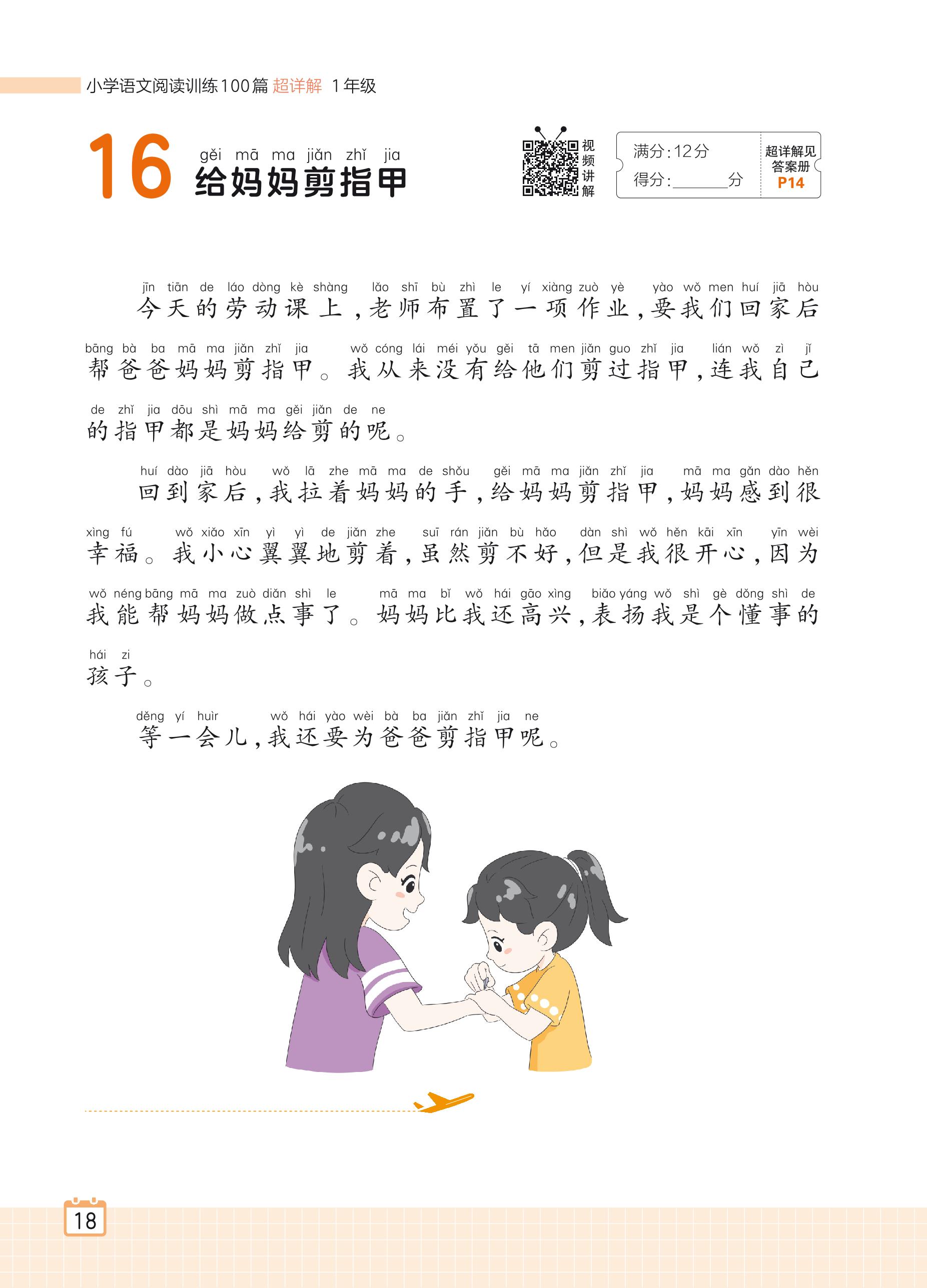 2024全一册一年级语文人教版 专题二 写人记事 16 给妈妈剪指甲