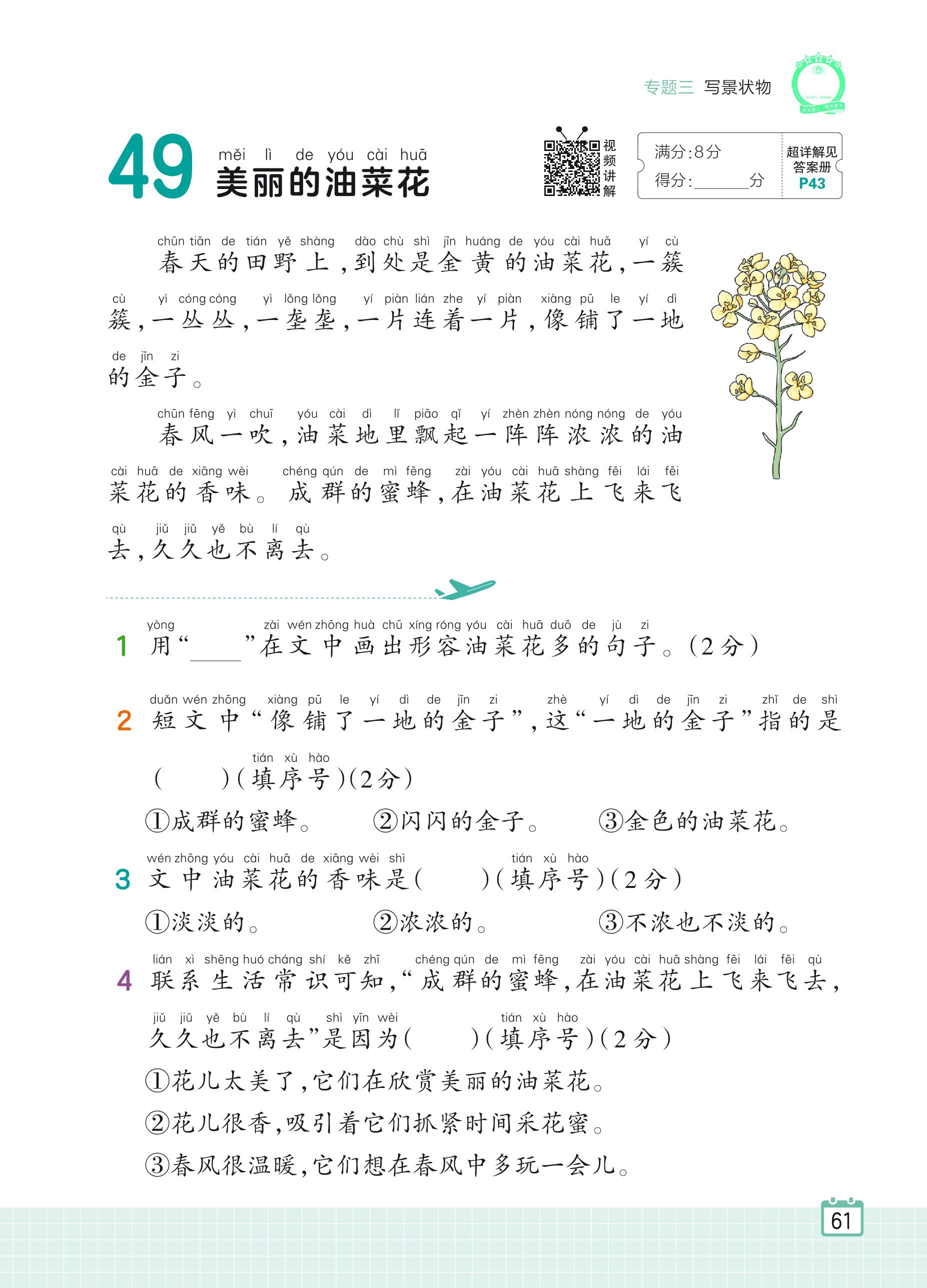 2024全一册一年级语文人教版 专题三 写景状物 49 美丽的油菜花