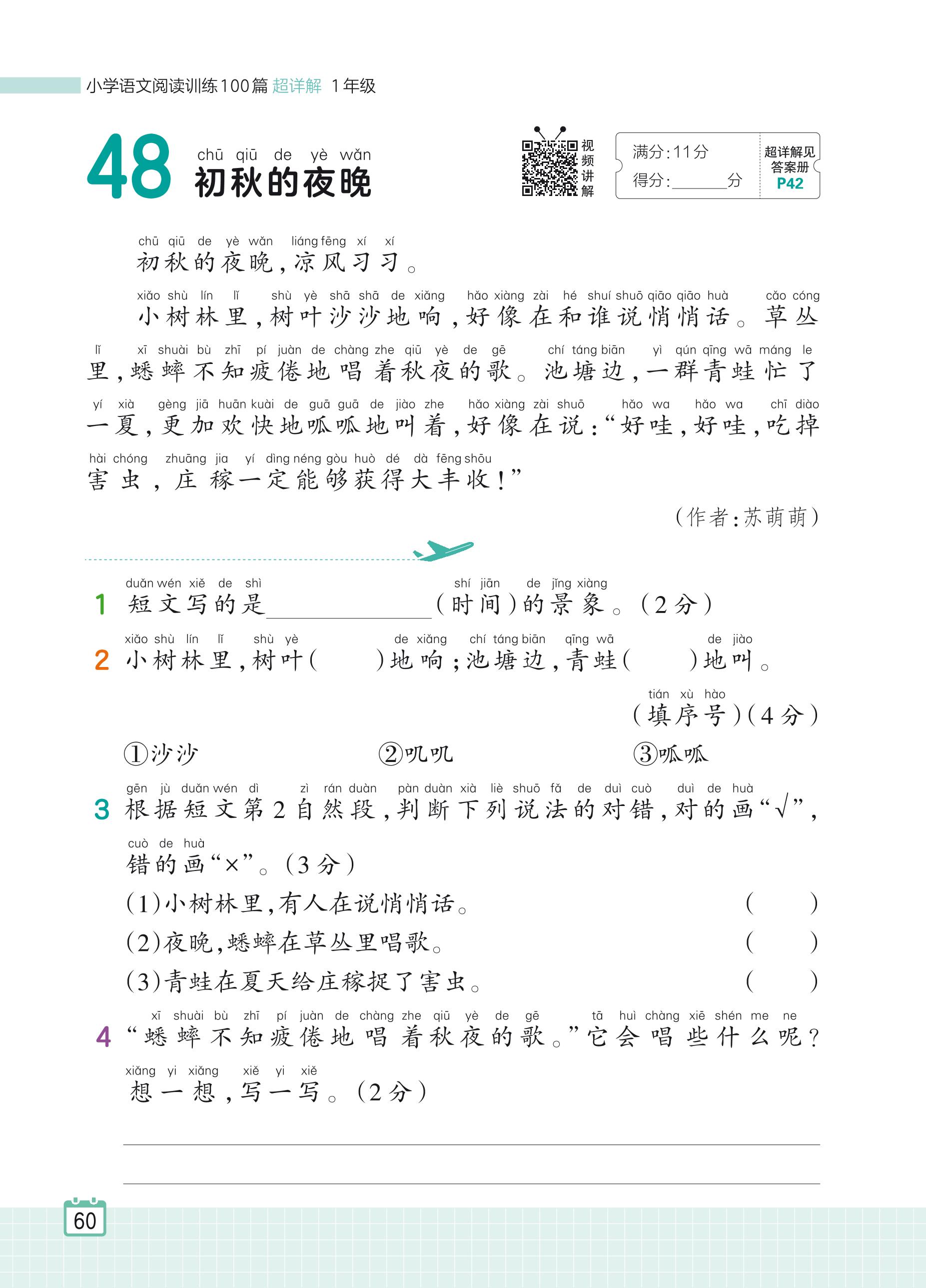 2024全一册一年级语文人教版 专题三 写景状物 48 初秋的夜晚