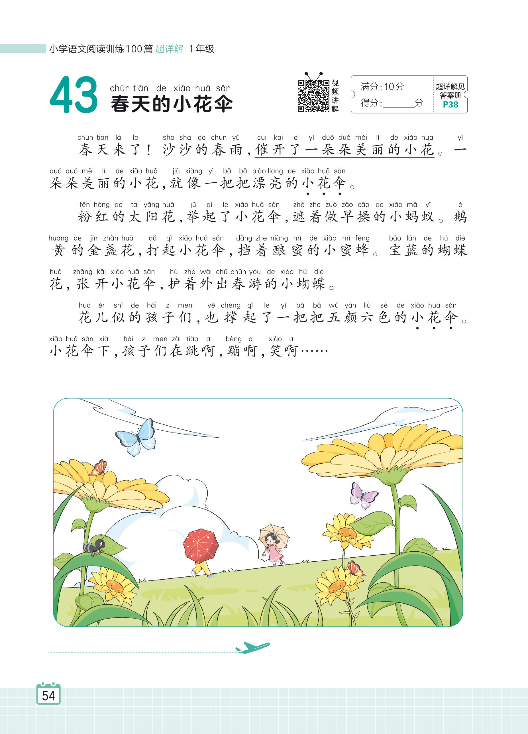 2024全一册一年级语文人教版 专题三 写景状物 43 春天的小花伞