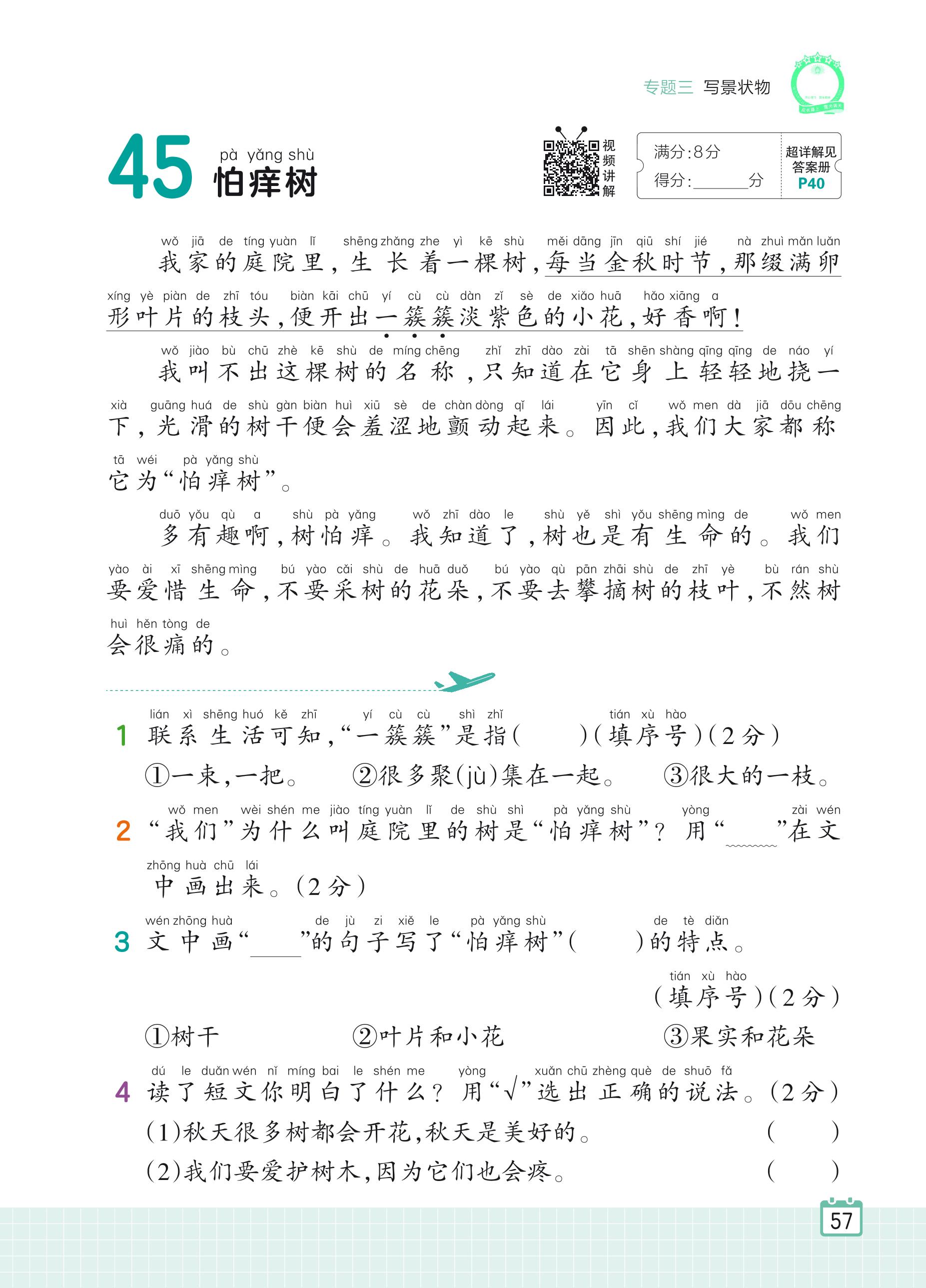 2024全一册一年级语文人教版 专题三 写景状物 45 怕痒树