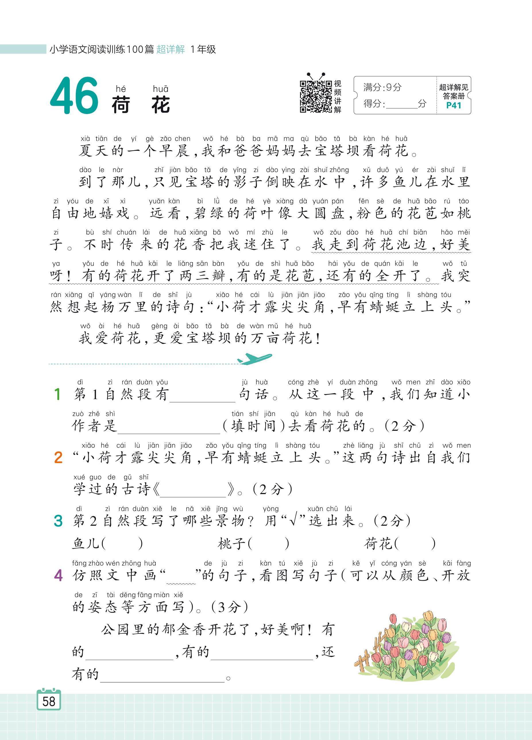 2024全一册一年级语文人教版 专题三 写景状物 46 荷花