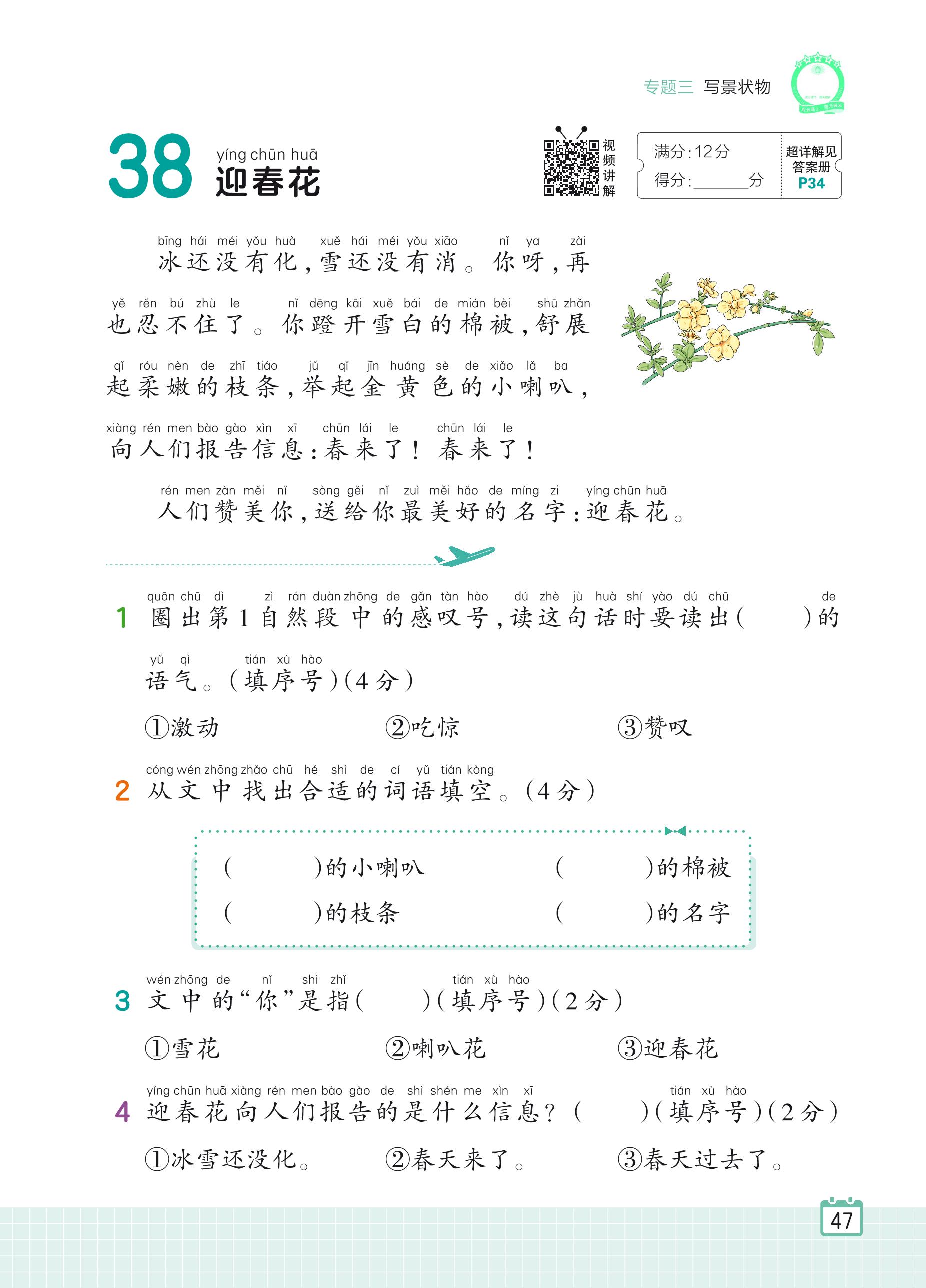 2024全一册一年级语文人教版 专题三 写景状物 38 迎春花