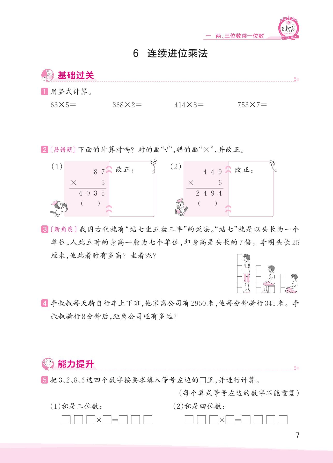 2023上册三年级数学苏教版 一 两、三位数乘一位数——6 连续进位乘法