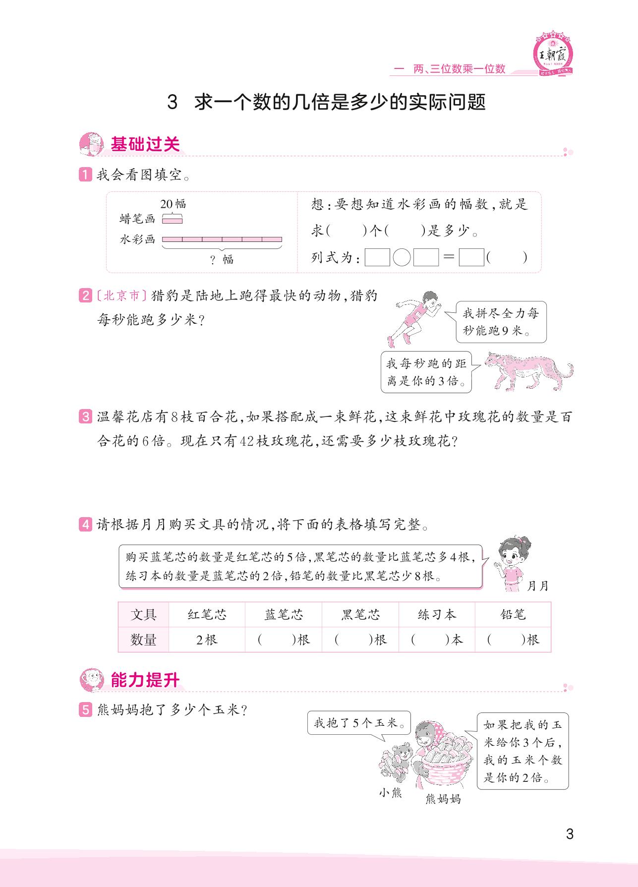 2023上册三年级数学苏教版 一 两、三位数乘一位数——3 求一个数的几倍是多少的实际问题