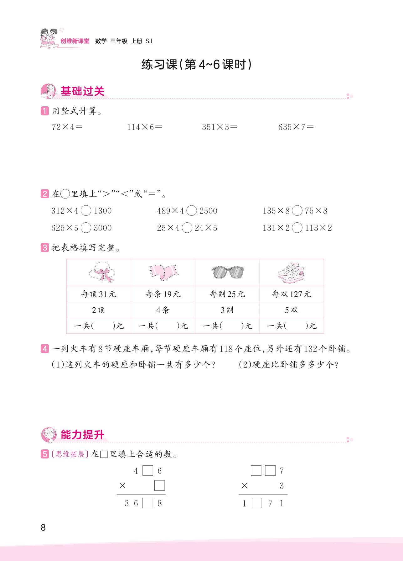 2023上册三年级数学苏教版 一 两、三位数乘一位数——练习课(第4~6课时)