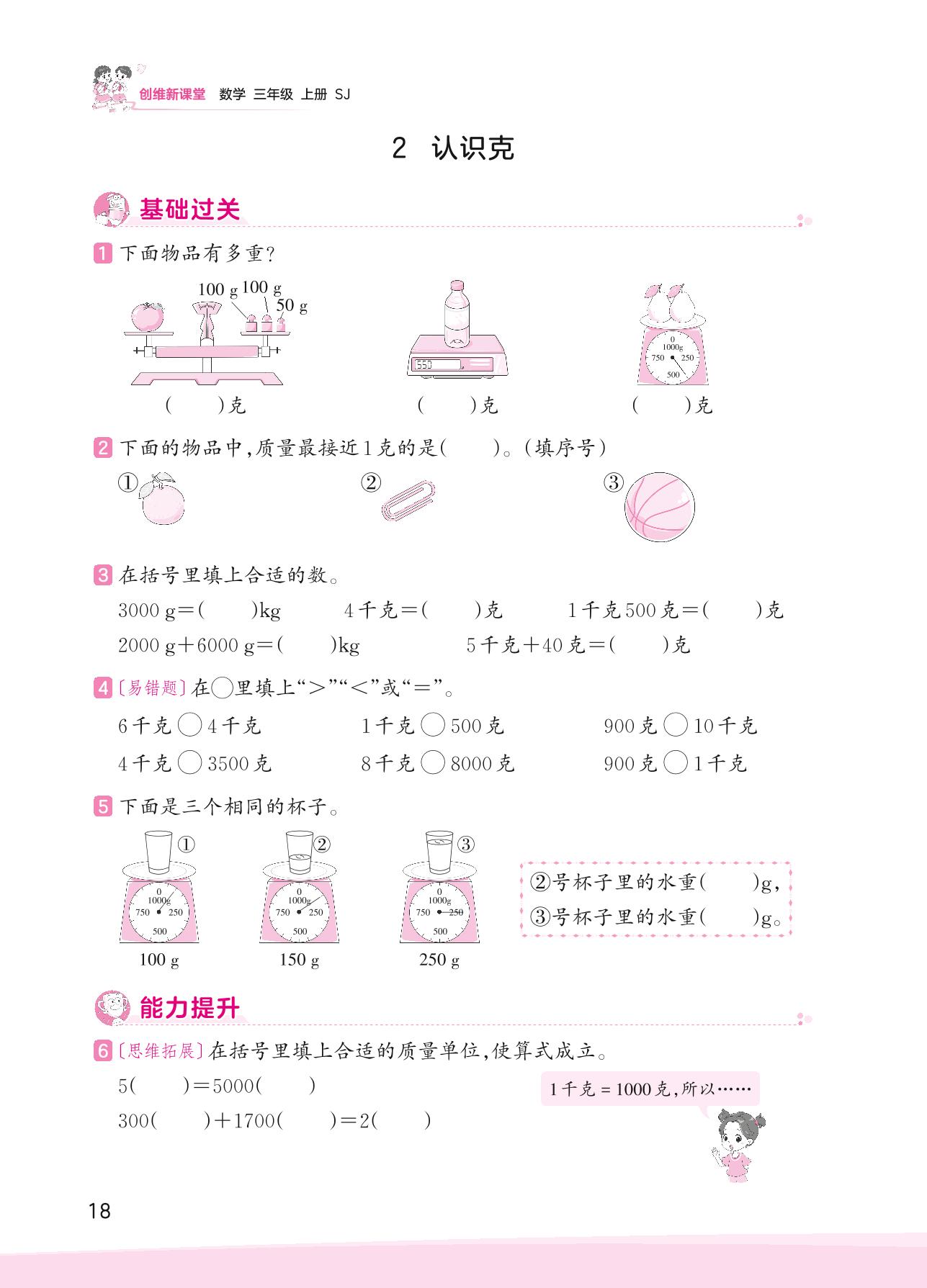 2023上册三年级数学苏教版 二 千克和克 ——2 认识克