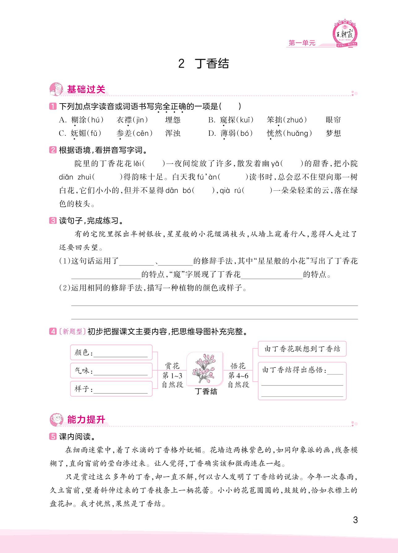 2023上册六年级语文人教版 第一单元 触摸自然——2 丁香结