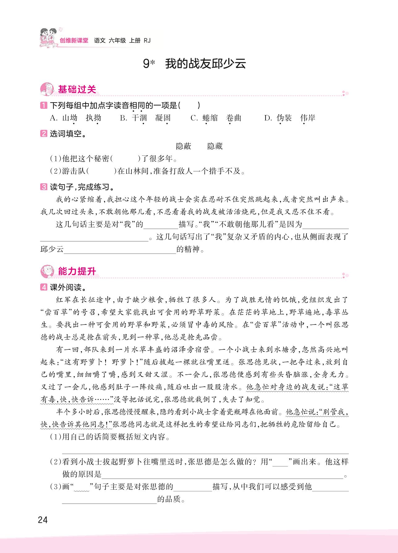 2023上册六年级语文人教版 第二单元 革命岁月——9 我的战友邱少云