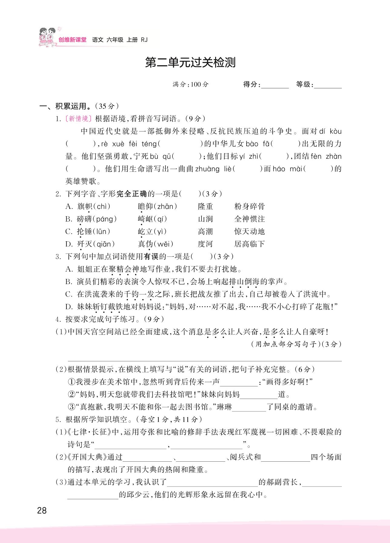 六年级语文人教版上册单元卷