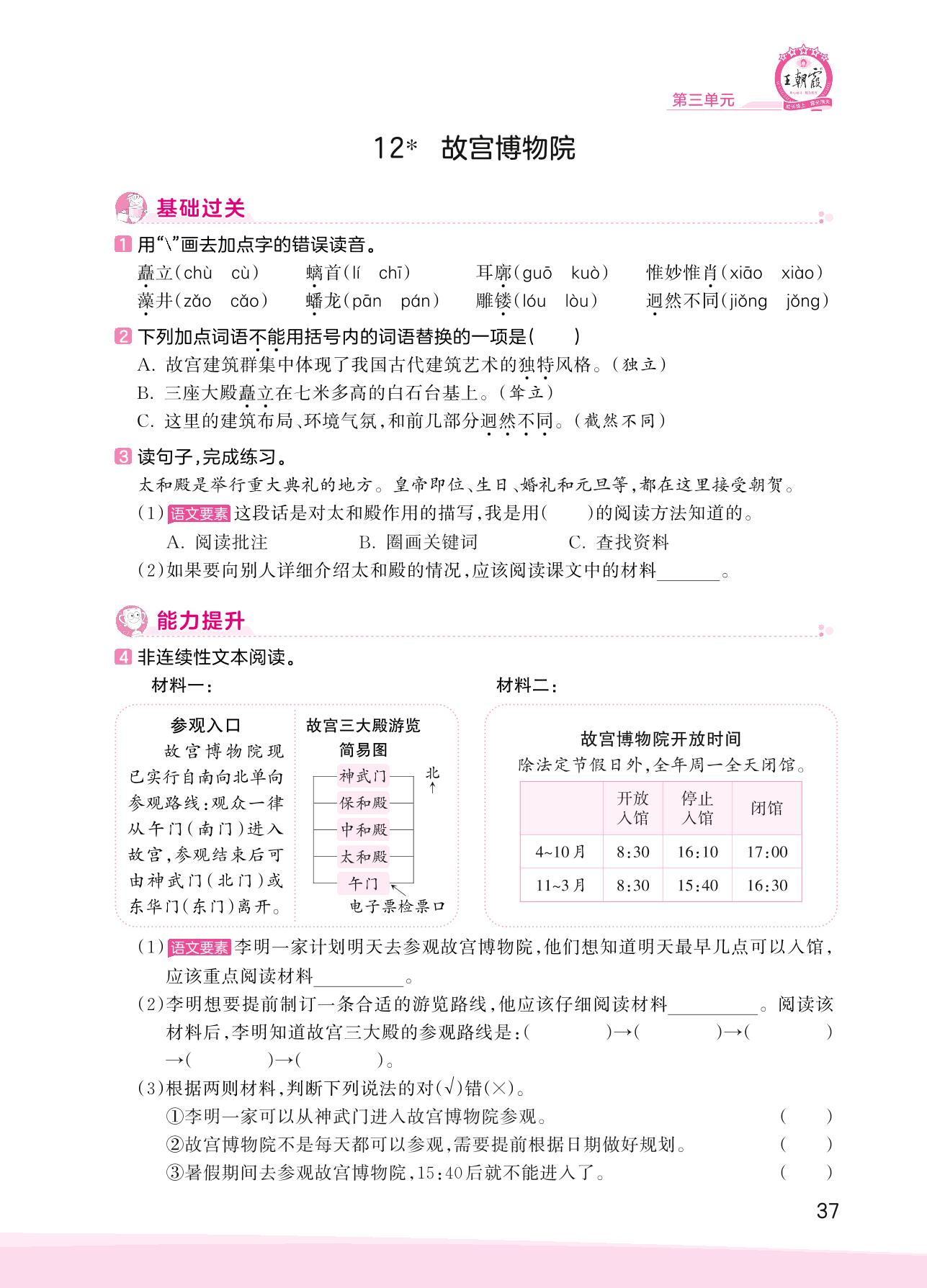 2023上册六年级语文人教版 第三单元 有目的地阅读——12 故宫博物院