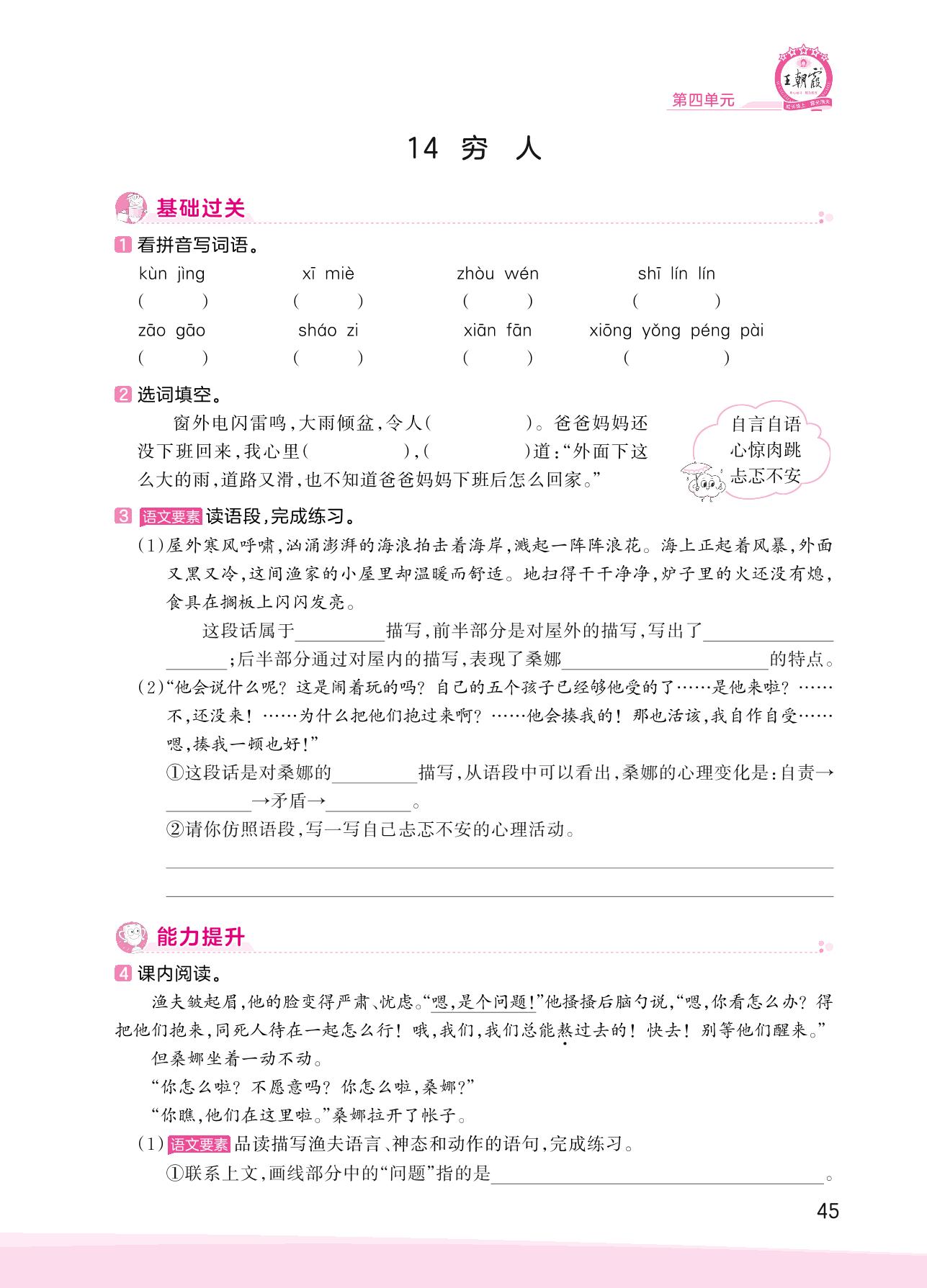 2023上册六年级语文人教版 第四单元 小说——14 穷人