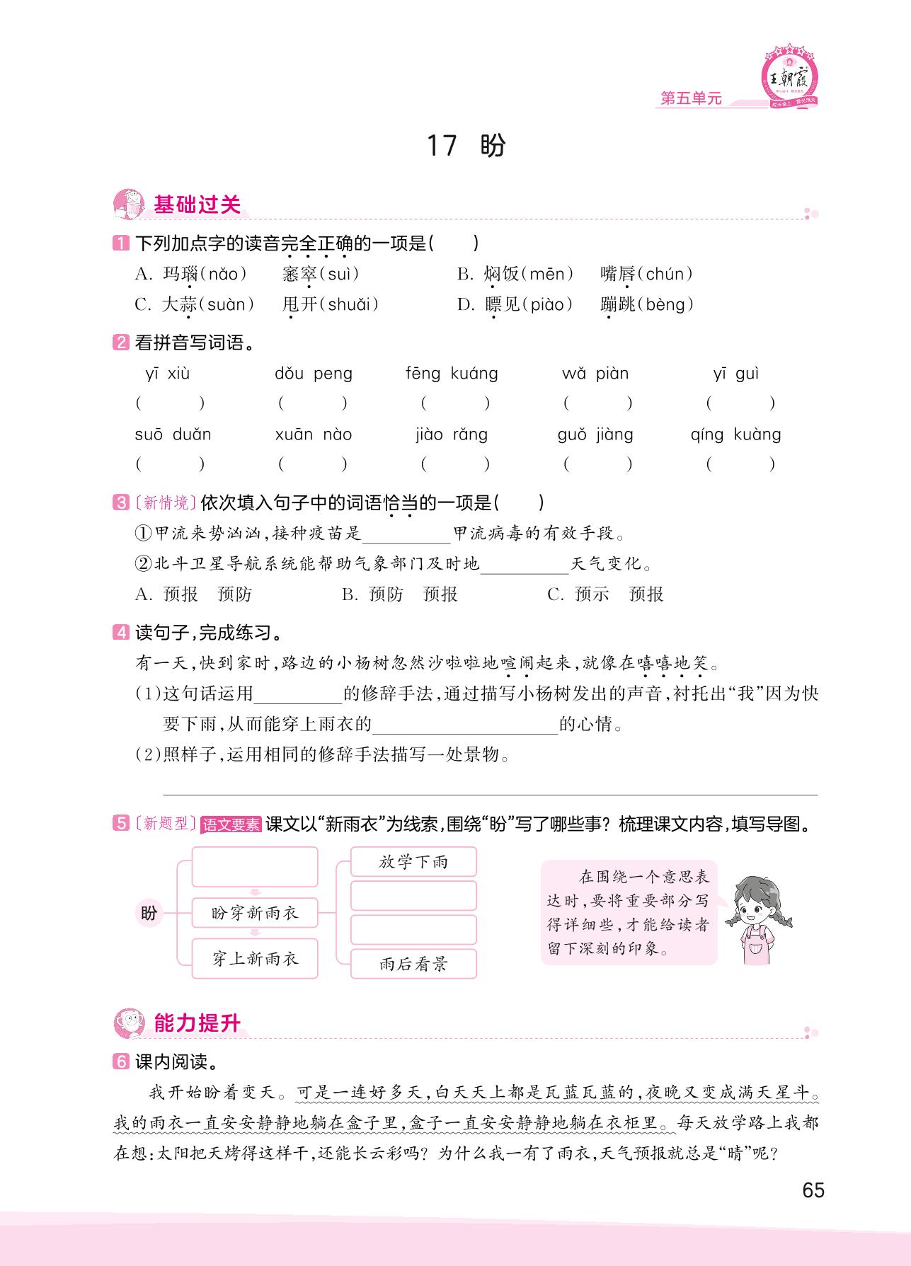 2023上册六年级语文人教版 第五单元 围绕中心意思写——17 盼
