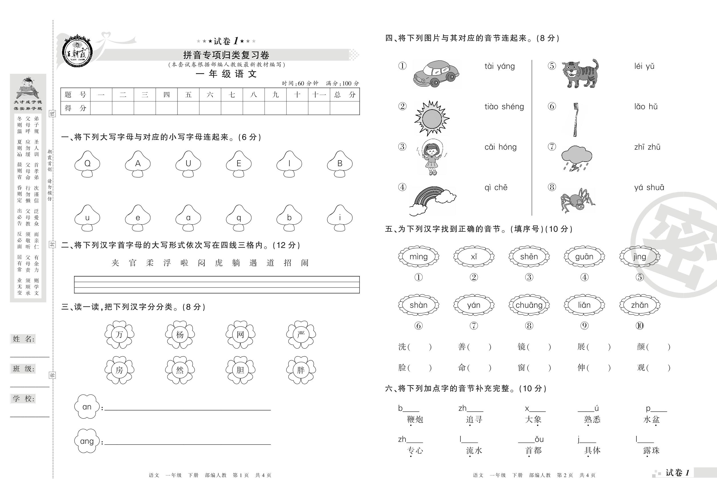 王朝霞期末专项卷——拼音专项归类复习卷一年级下册语文(人教版)_R210731191053【1】