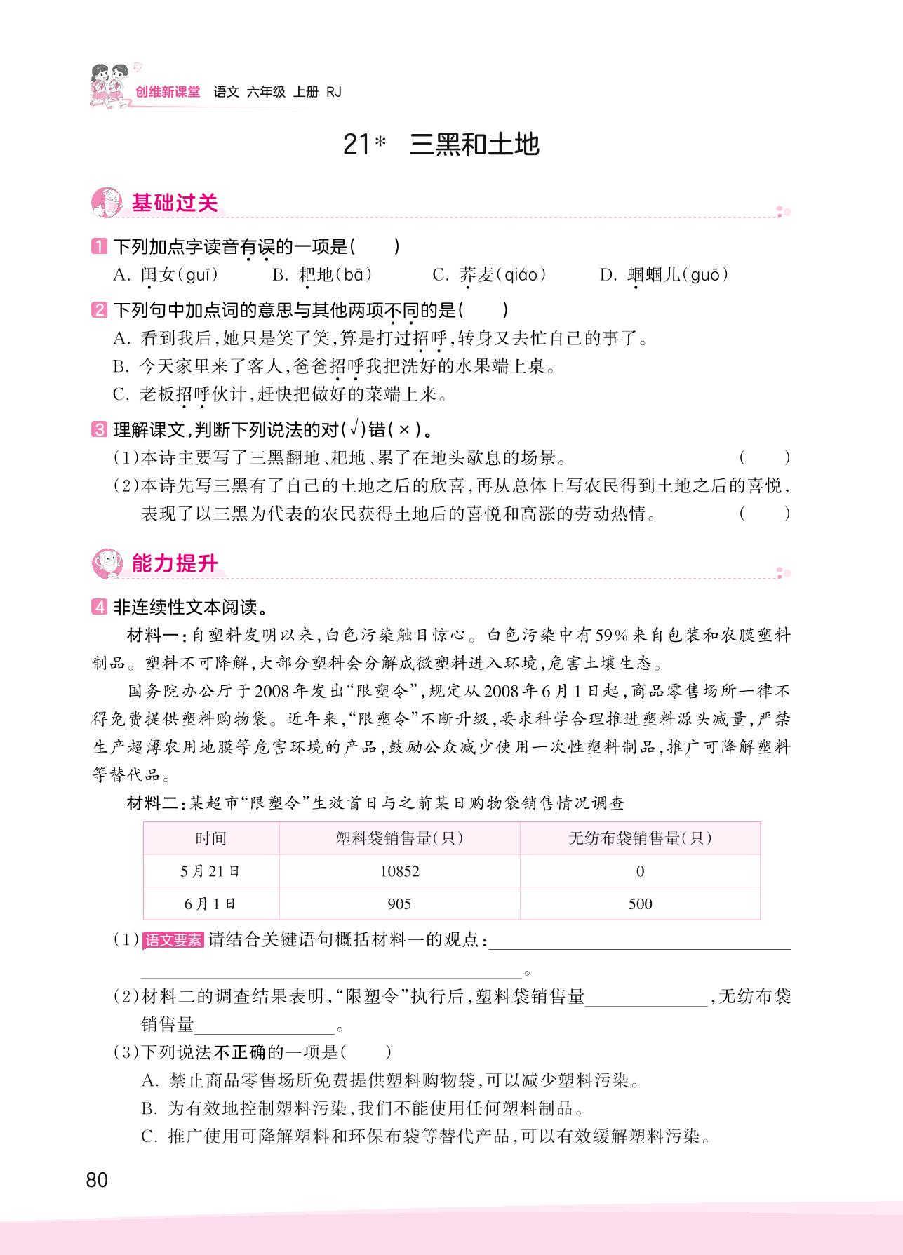 2023上册六年级语文人教版 第六单元 保护环境——21 三黑和土地
