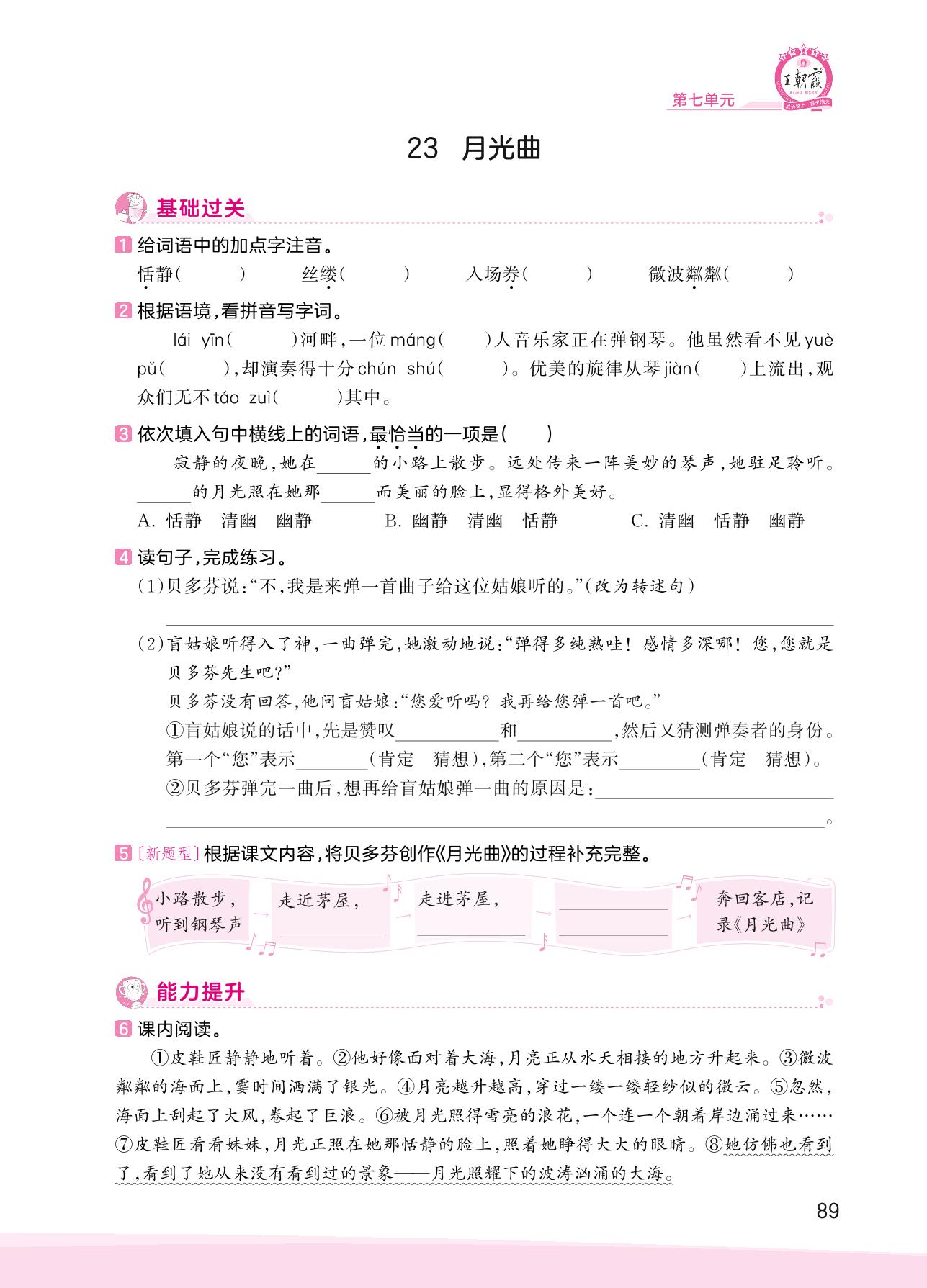 2023上册六年级语文人教版 第七单元 艺术之美——23 月光曲
