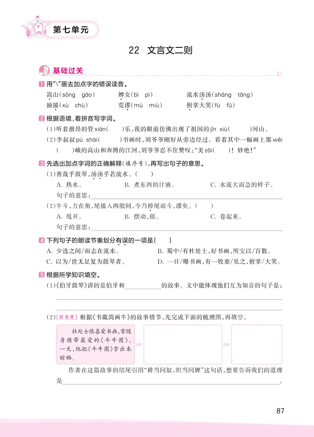 2023上册六年级语文人教版 第七单元 艺术之美——22 文言文二则