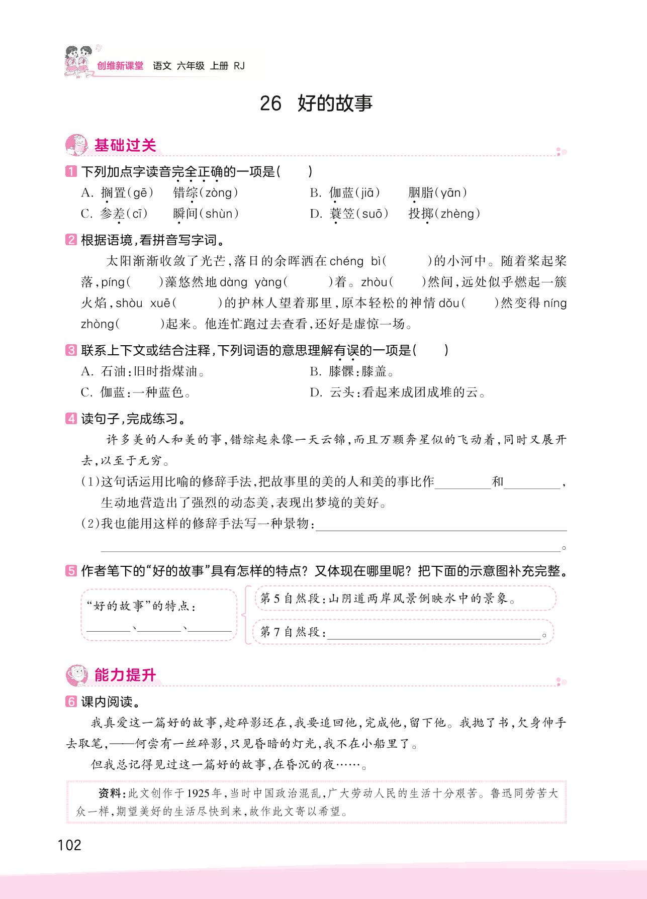 2023上册六年级语文人教版 第八单元 走近鲁迅——26 好的故事